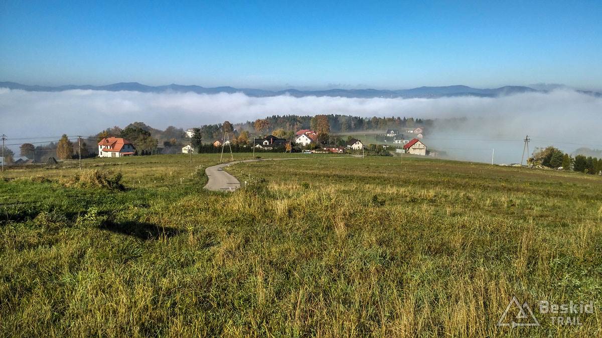 Zaraz po wjechaniu pierwszych 150 metrów, do Popardowej Niżnej, gdzie łapię żółty szlak, znajduje się ponad kłębiącymi się w dolinach chmurami. Od razu robi się cieplej, szczególnie że słońce tego dnia dobrze rozgrzewało. Niestety wraz z wysokością mocno wzmagał się wiatr i w otwartym terenie, ale i niejednokrotnie w lesie, mocno wychładzał. Nie dało się rozsądnie ubrać, bo za dużo warstw od razu przegrzewało, a za mało wychładzało, szczególnie że warunki co chwila się zmieniały.
