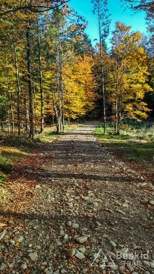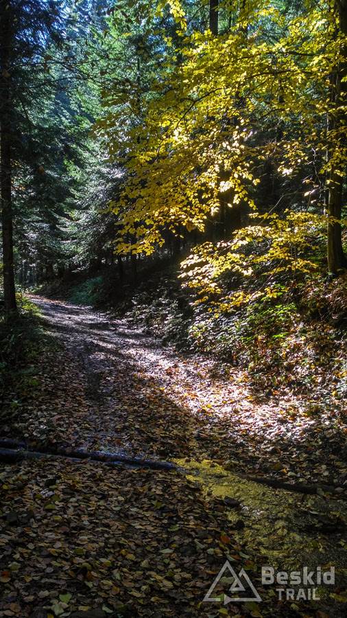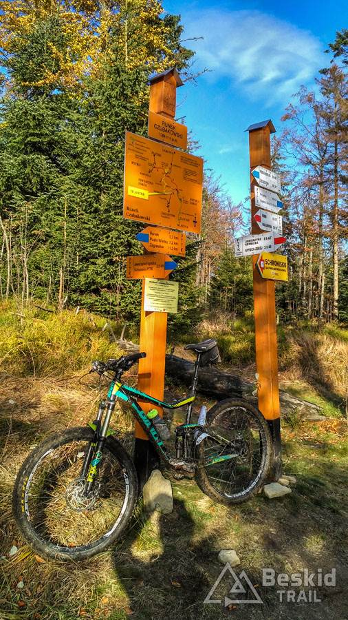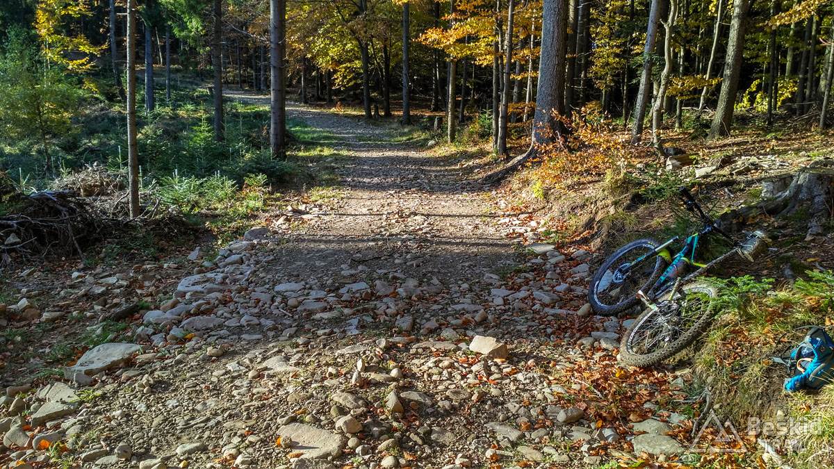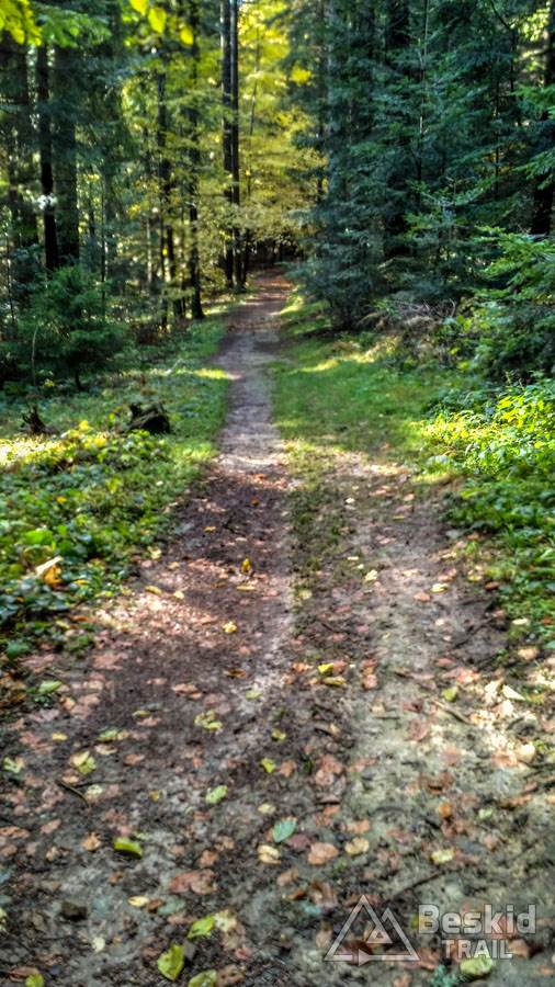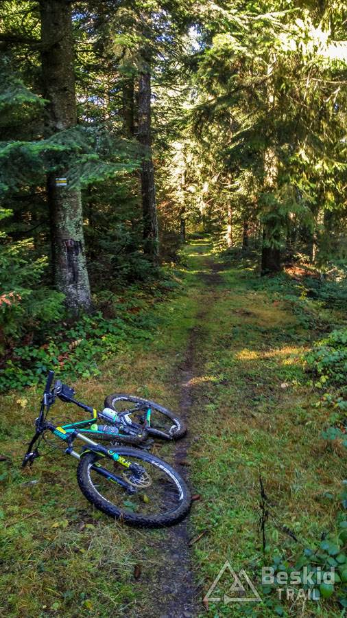 Żółty szlak, którym jechałem, okazał się nieprawdopodobnie fantastyczną trasą, w większości leśną a i miejscami singlową. Tylko kilka fragmentów było mocniej tkniętych przez leśników, ale nie odebrało to pozytywnego odbioru z jego przejazdu. W zasadzie 95% długości szlaku jest do przejechania, w górę i w dół, a podejść z rowerem trzeba jedynie na Kozie Żebro i Czerszlę (tu stromość podejścia w 100% porównywalna z Lackową!).