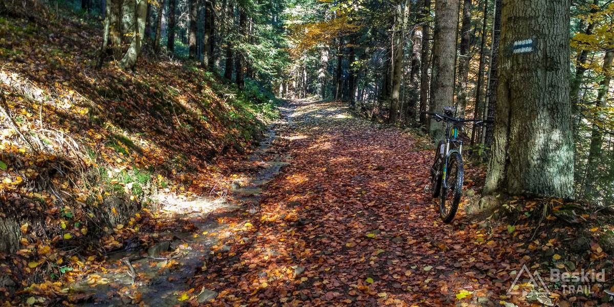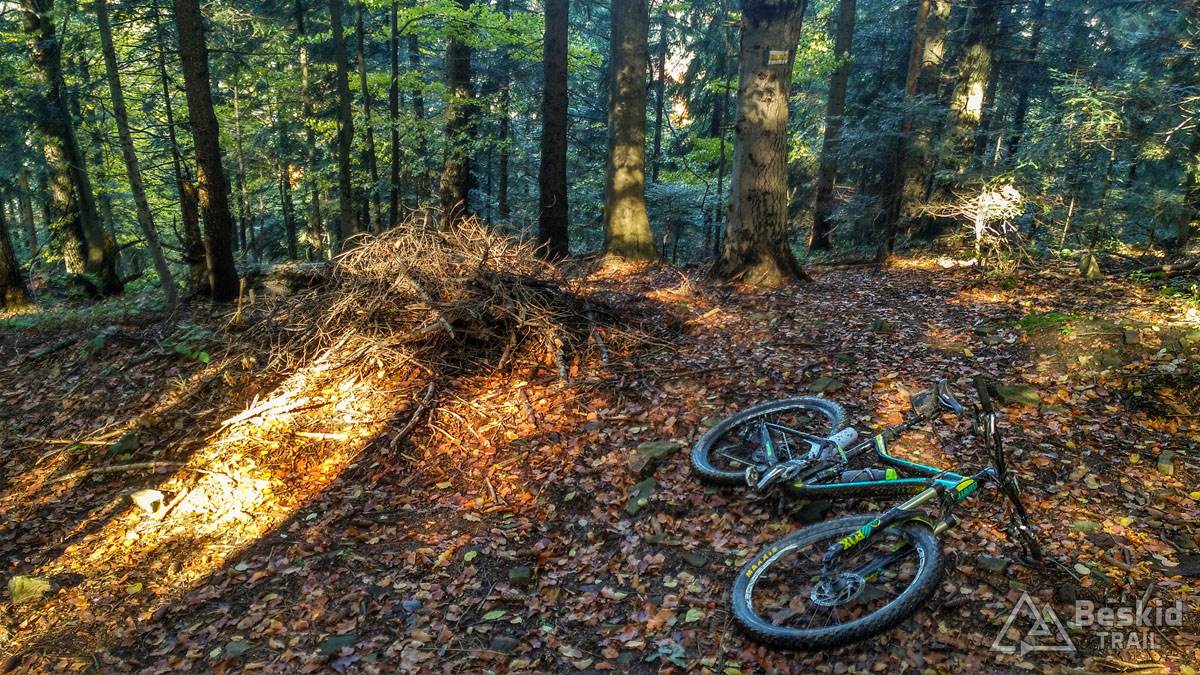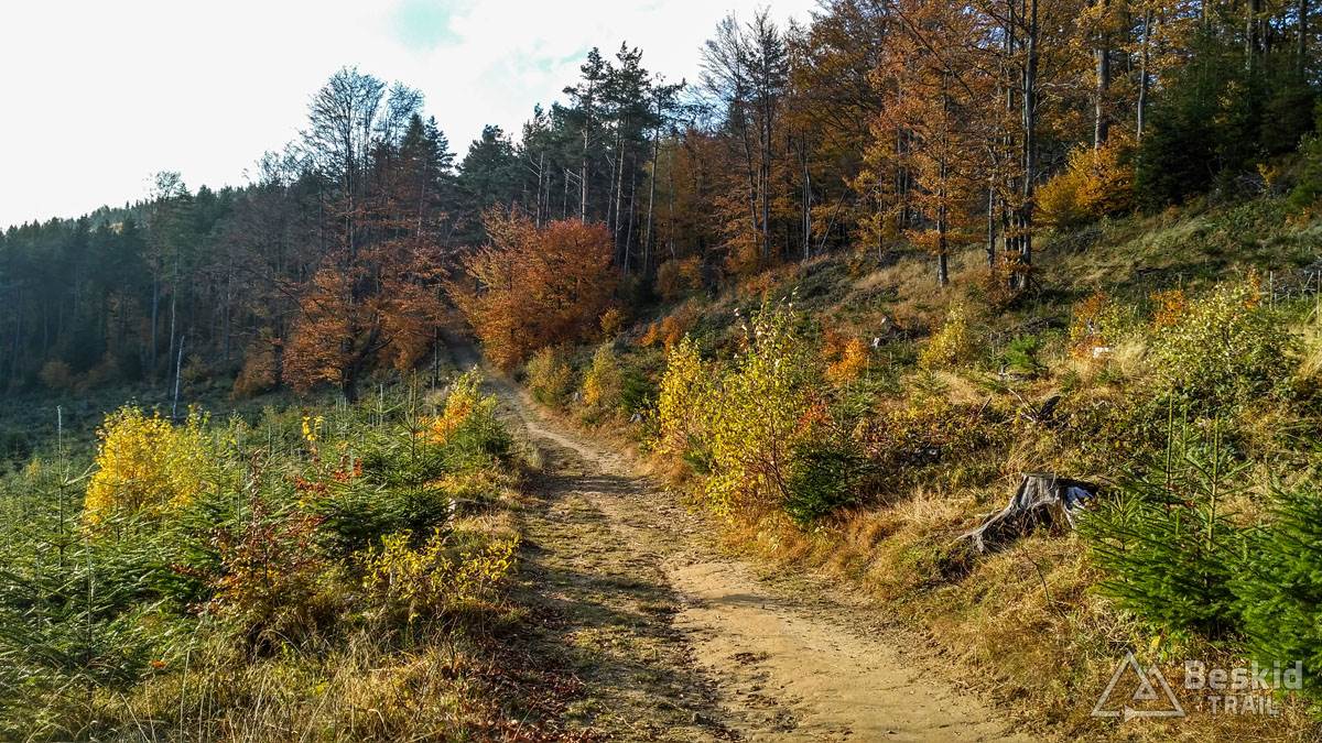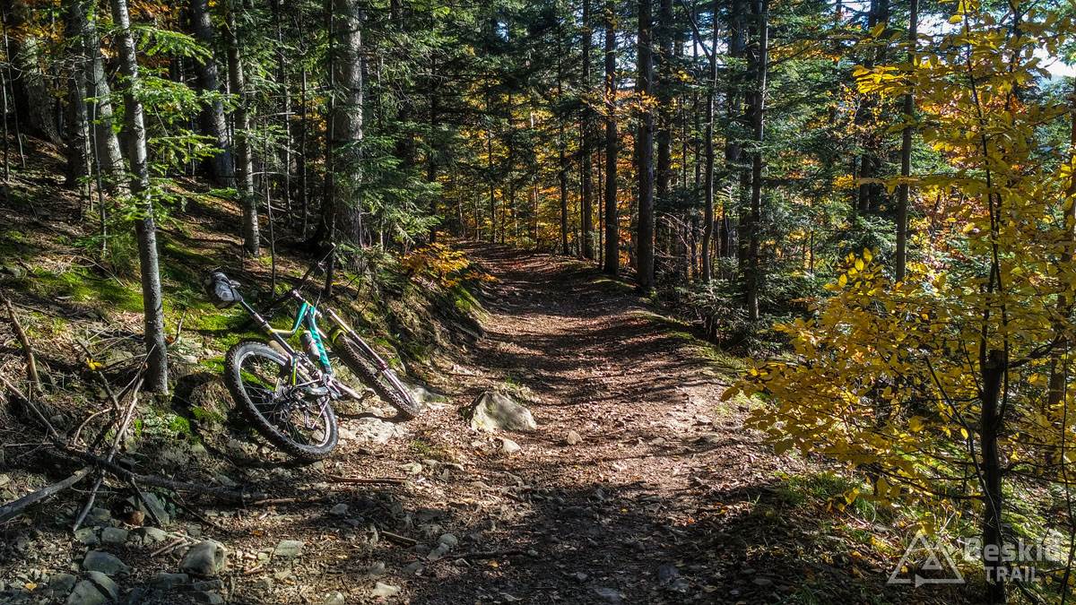 Żółty szlak, którym jechałem, okazał się nieprawdopodobnie fantastyczną trasą, w większości leśną a i miejscami singlową. Tylko kilka fragmentów było mocniej tkniętych przez leśników, ale nie odebrało to pozytywnego odbioru z jego przejazdu. W zasadzie 95% długości szlaku jest do przejechania, w górę i w dół, a podejść z rowerem trzeba jedynie na Kozie Żebro i Czerszlę (tu stromość podejścia w 100% porównywalna z Lackową!).
