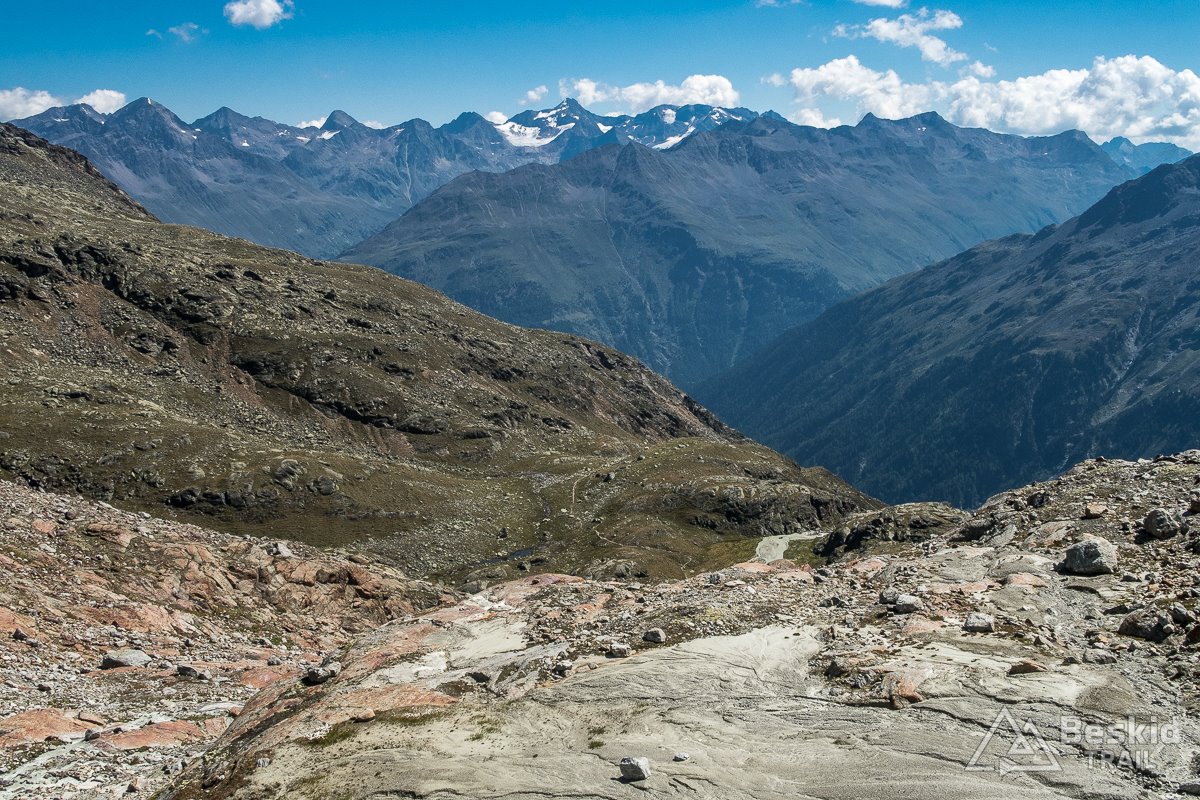 Postanowiłem jeszcze podjechać kilka metrów wyżej, i dzięki najwyżej położonemu tunelowi w Europie – Rosi-Mittermaier-Tunnel (2829 m n.p.m.) – dostałem się do drugiej części tego kompleksu narciarskiego. Widoki także ciekawe, choć już chyba nieco mniej imponujące – lecz oczywiście warto dołożyć sobie te kilkadziesiąt metrów i kilka kilometrów. Przy okazji ma się okazję zobaczyć, jak bardzo kurczą się lodowce, ponieważ nawet mniej wprawne oko dostrzeże ich jeszcze nie tak dawny zasięg.