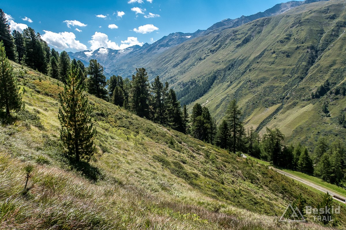 Pierwsze kilka kilometrów lekko się wznosiło, więc był to dobry czas na rozgrzewkę i  uzmysłowienie sobie, gdzie jestem i dokąd jadę ;). Jeszcze dobrze nie wyjechałem z Sölden, a już miałem za sobą pierwszą ściankę, po której skręcając w prawo – czekał mnie zasadniczy podjazd doliną Rettenbachtal, gdzie rozpoczyna się główny segment na Stravie. I zaczęło się! Zgodnie z tym co mówił Bartek, tam nie ma miękkiej gry, i z przyjemnością – szczególnie w drugiej części podjazdu – to nie miało wiele wspólnego. Generalnie stromo, stromo i tylko czasem mniej stromo ;). Za to z każdym metrem w górę – widoki dosłownie biły po oczach! Bez wątpienia bez nich cała przygoda nie miałaby większego sensu, więc jeśli planujecie ten podjazd – koniecznie przy dobrej aurze.
