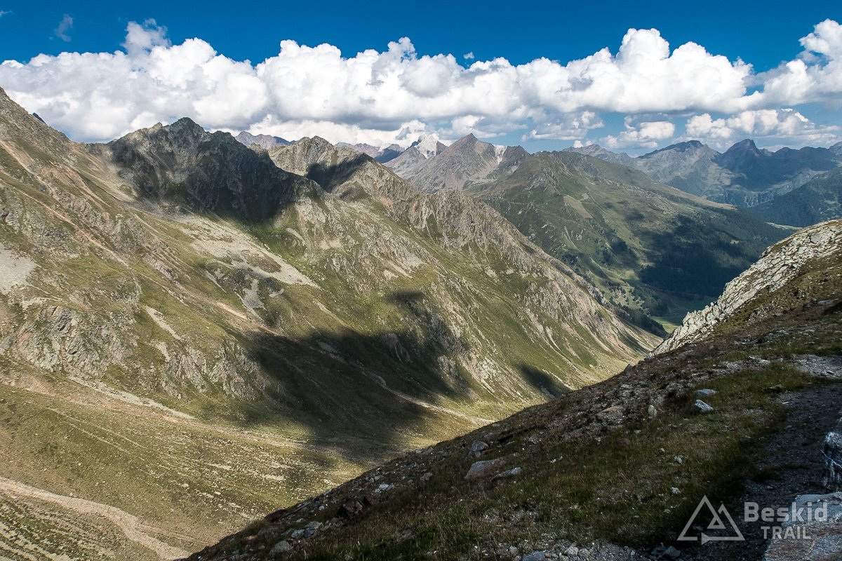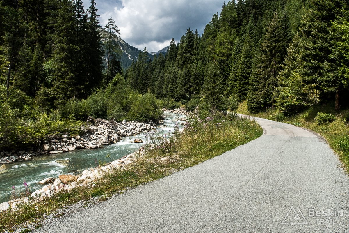 Zjeżdżam więc na dno doliny Defereggental , gdzie odchodzi jedna z bocznych dolin, i podjeżdżam nią kawałek. Po kilku kilometrach, gdy widzę, ze chmury jednak nie dadzą mi spokoju tego dnia, zawracam, i drogą wcześniejszego zjazdu – podjeżdżam z powrotem na przełęcz. W międzyczasie spada na mnie kilka kropel, ale w oddali – w sąsiedniej dolinie i na przełęczy widzę, że miejscowo pada już całkiem solidnie.