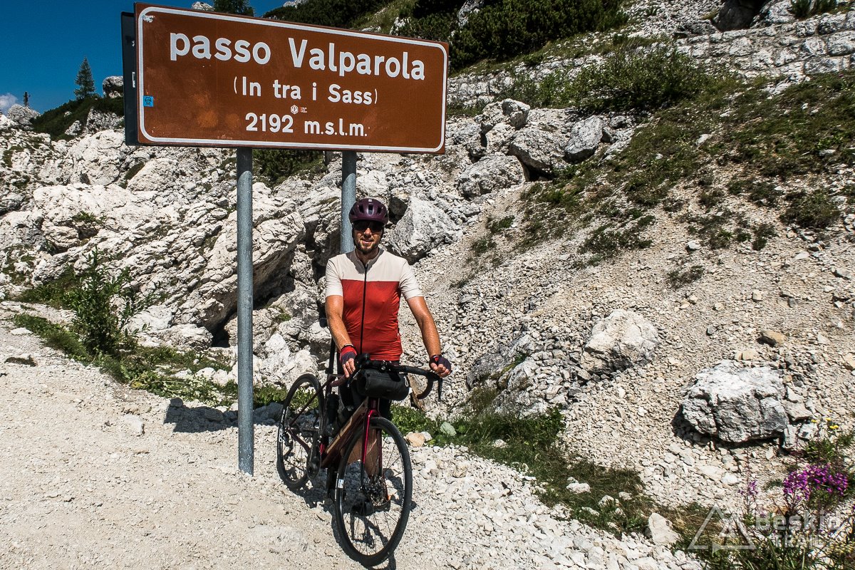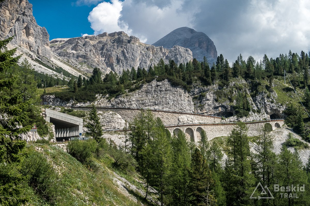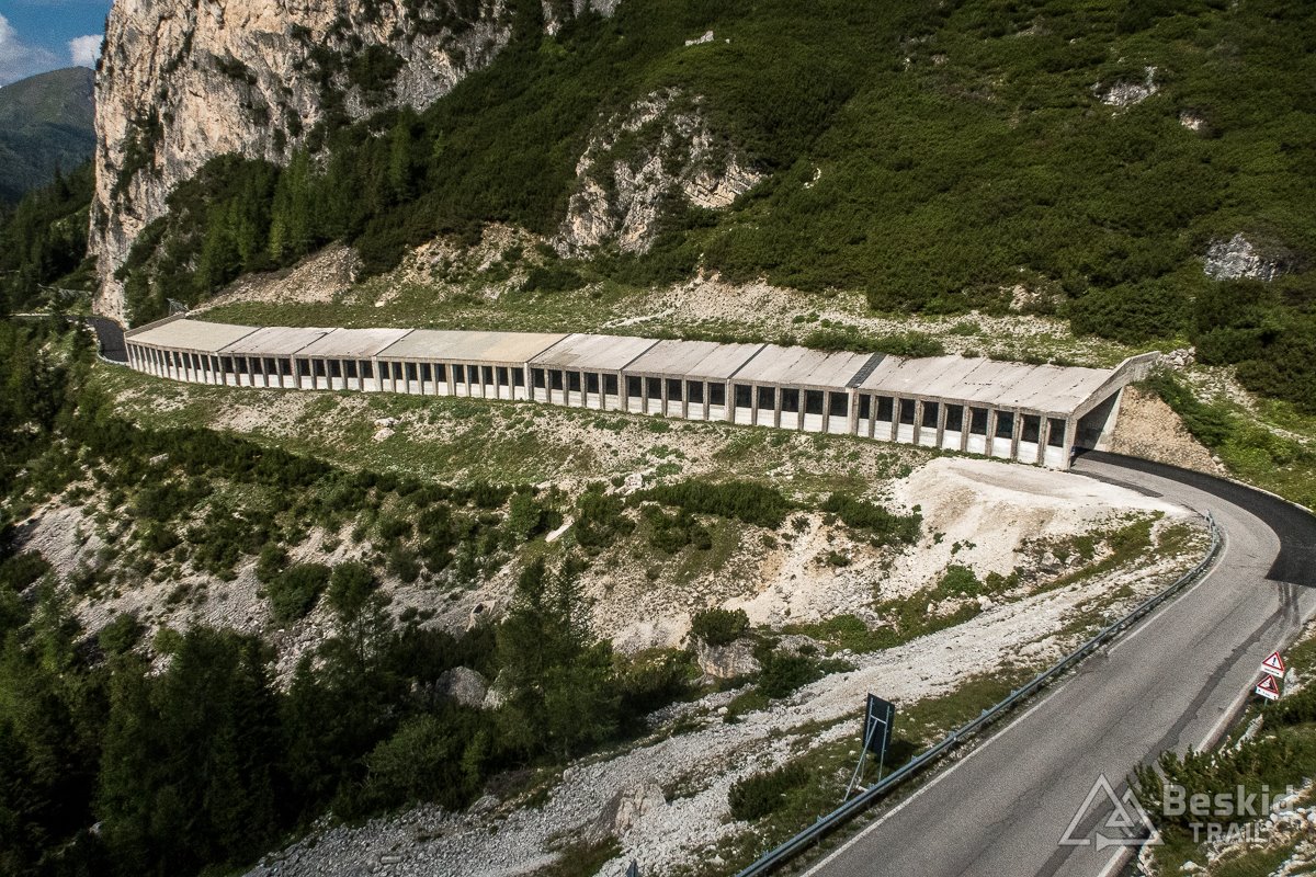 Bardzo lubię podjazd na Passo di Falzarego (2105 m. n.p.m.), ponieważ bardzo logicznie prowadzi trasa, a nachylenie jest „w sam raz”. Dodatkowo dobra nawierzchnia, pewne źródełko i dwie wyjątkowe galerie bardzo urozmaicają ten odcinek Sella Ronda. Z przełęczy od razu jadę wyżej – na kolejną – Passo di Valparola (2168 m. n.p.m.), na której zazwyczaj robię właściwy postój i odpoczynek (widokowo jednak ładniej niż wcześniejsza, szczególnie że zazwyczaj jest ciszej i spokojniej).