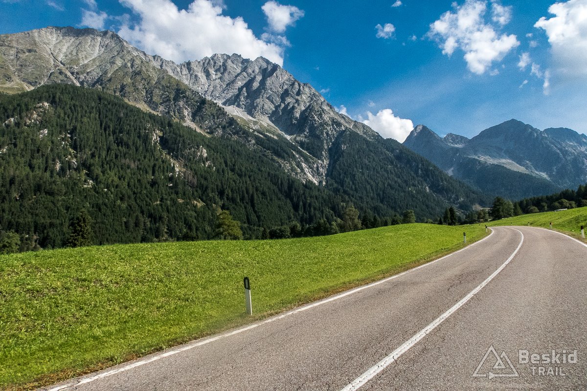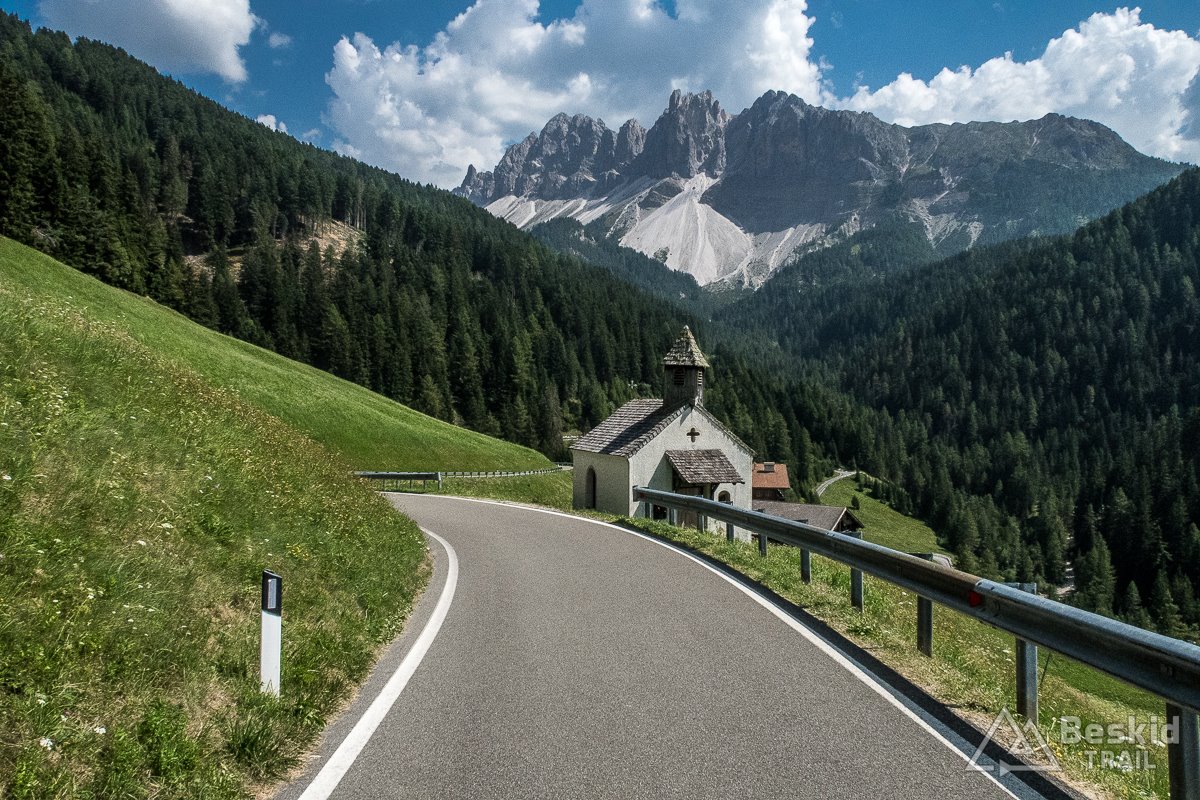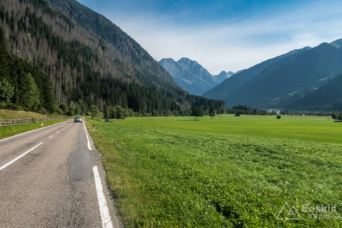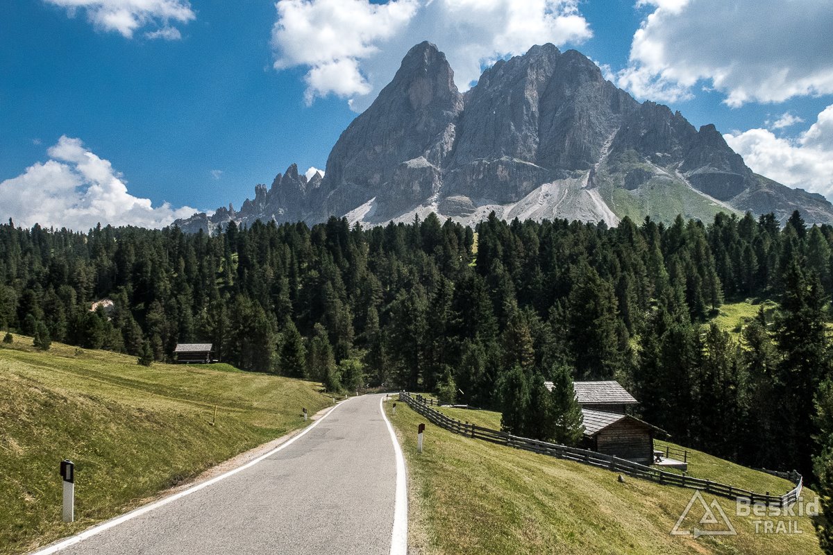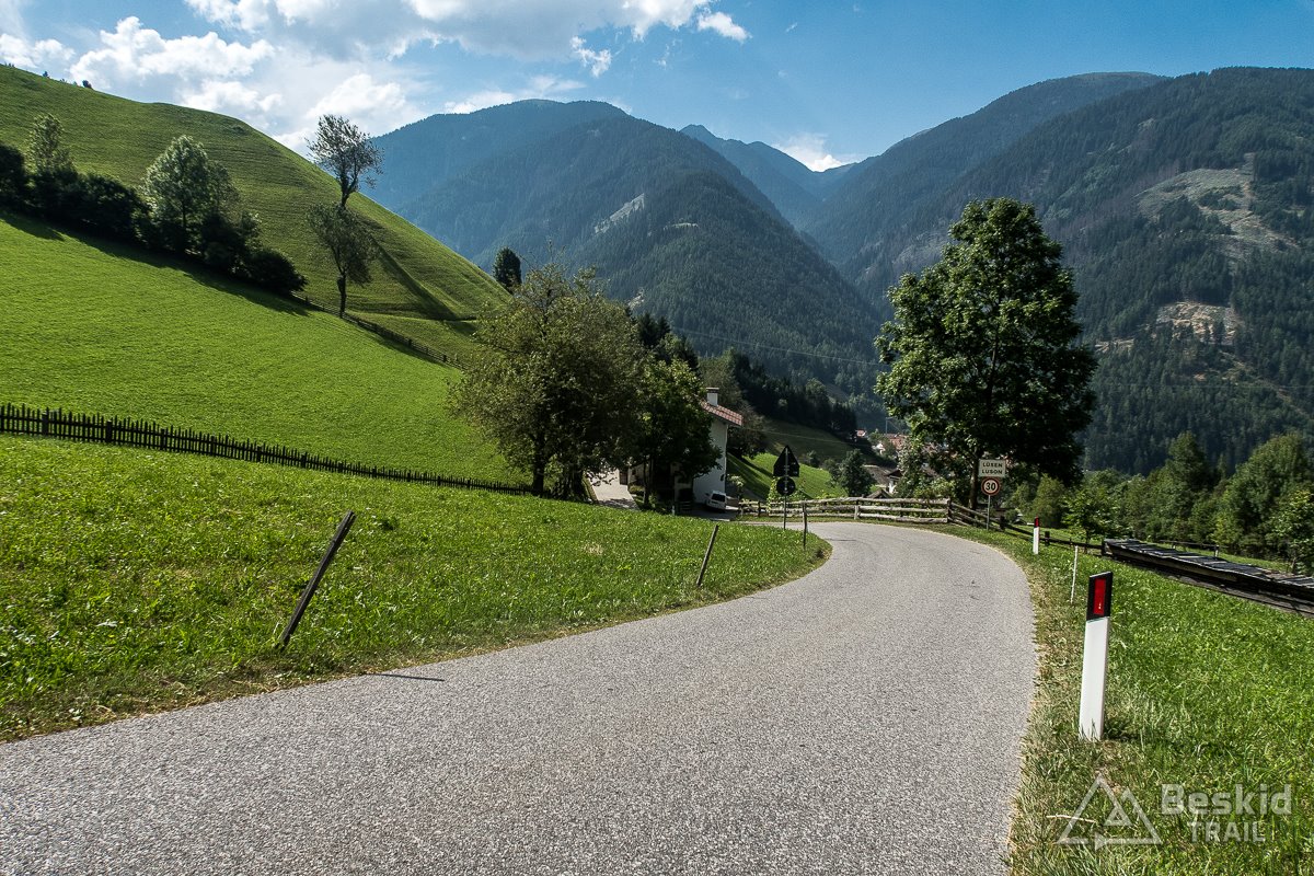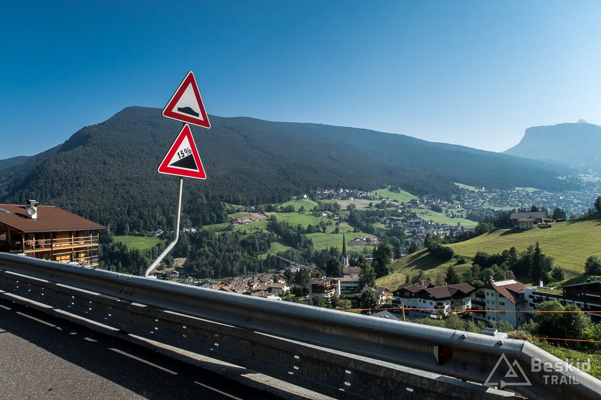 Gdy po wyjechaniu z ciasnej drogi, dojechałem do pierwszej wioski – Bulla, w końcu ponownie mogłem cieszyć się dobrym asfaltem, a w bonusie także rozległymi widokami na otoczenie doliny Val Gardena, z górującymi nad nią potężnymi i nieraz wysoko zawieszonymi, monumentalnymi skałami.