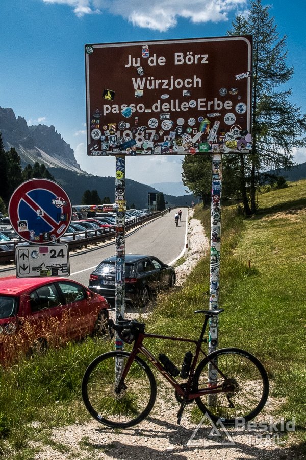 Gdy dojechałem do jednej z głównych dróg w okolicy, postanowiłem jeszcze podjechać i zdobyć jedną z ciekawszych przełęczy w okolicy – Passo delle Erbe (1987 m. n.p.m.). Kilka lat temu, razem z Olą, wjechaliśmy na nią od drugiej strony, i wtedy była to solidna wspinaczka. Teraz było o tyle łatwiej, że krócej i bardziej spokojnie. A na przełęczy już ruch całkiem spory, zarówno rowerzystów, jak i pieszych oraz zmotoryzowanych. Na szczęście jest to obszar o mniejszym natężeniu ogólnego ruchu turystycznego, więc można cieszyć się względnym spokojem na trasie, jak i w okolicy.