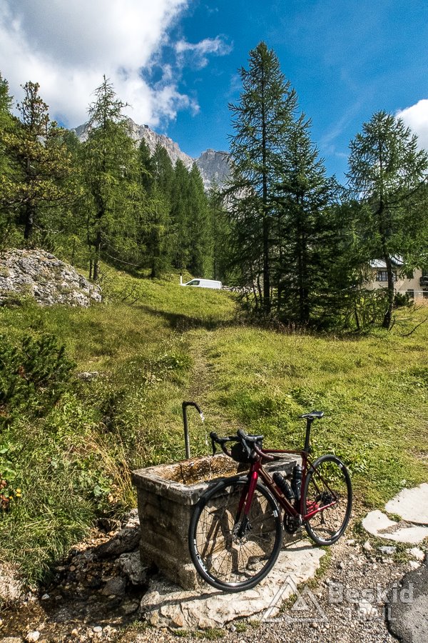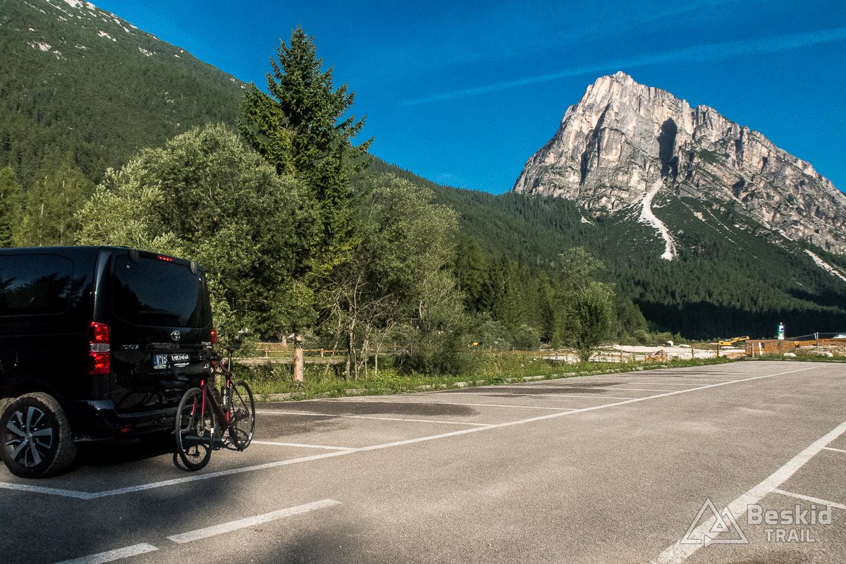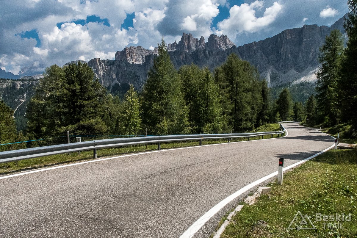 Startuje z Cortiny d’Ampezzo przed dziewiątą, by mieć komfort czasowy na przejechanie tej niby nie długiej, acz wymagającej pętli, ponieważ na popołudnie zapowiadane były burze. A jazda w deszczu nie należy do tych aktywności, za którymi przepadam…