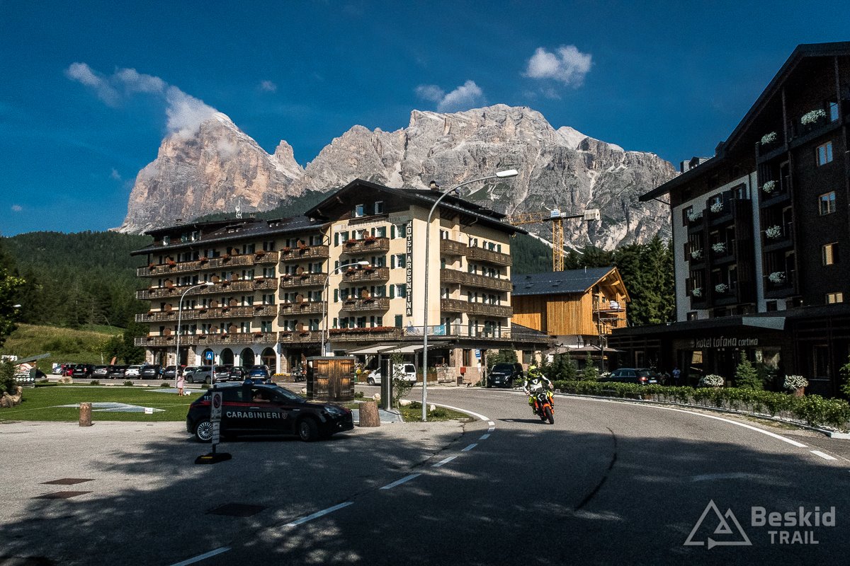 Zjazd do Cortiny d’Ampezzo także był sporą przyjemnością – dobra nawierzchnia, fajnie wyprofilowane zakręty, no i te widoki z drogi – cudowny odcinek trasy! Postanowiłem jeszcze przejechać się trochę uliczkami tego wyjątkowego miasta, wszak położonego niemal w sercu najpiękniejszych gór. Potem jeszcze tylko kilka kilometrów lekkiego podjazdu na parking i po pięciu godzinach z powrotem melduję się przy aucie.
