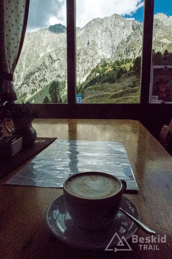 Postanawiam więc nieco odsapnąć, napić się kawy już w austriackiej cenie i zerkając na prognozy, zdecydować się na zjazd na drugą stronę przełęczy. Kalkulując potencjalne ryzyko deszczu, dochodzę do wniosku, że w ostateczności to i tak ostatni dzień wyjazdu, więc w razie czego nie będę musiał niczego później na siłę suszyć ;).
