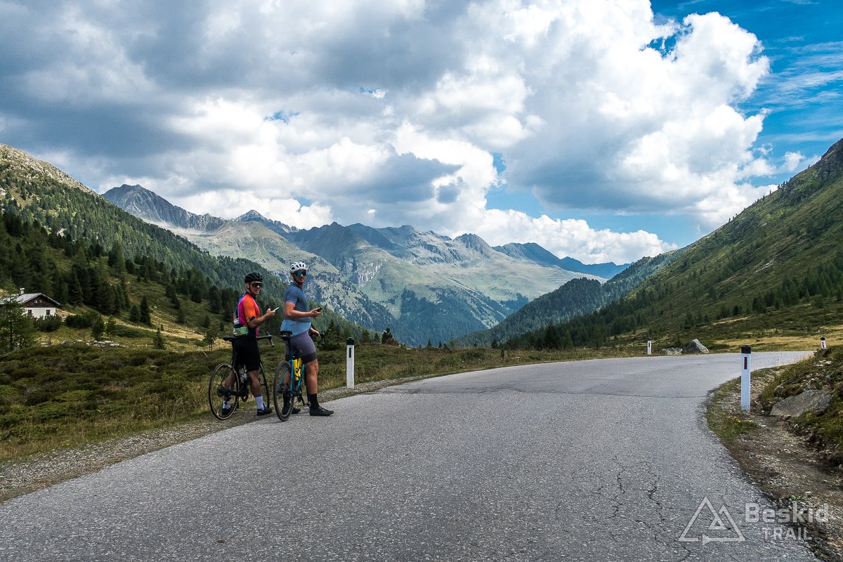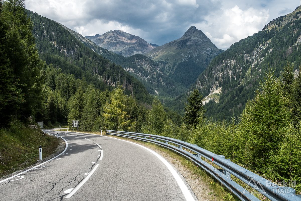 Na dole zatrzymałem się na chwilę w sklepie, by zdecydować, co dalej. Nie chciałem za bardzo pierwszego dnia dawać sobie w kość, ale z drugiej strony jechało mi się do tej pory dobrze, a czas i pogoda sprzyjały, więc postanowiłem zdobyć jeszcze tego dnia drugi – bardzo oczywisty cel w okolicy – Timmelsjoch/Passo del Rombo (2509 m n.p.m.).
