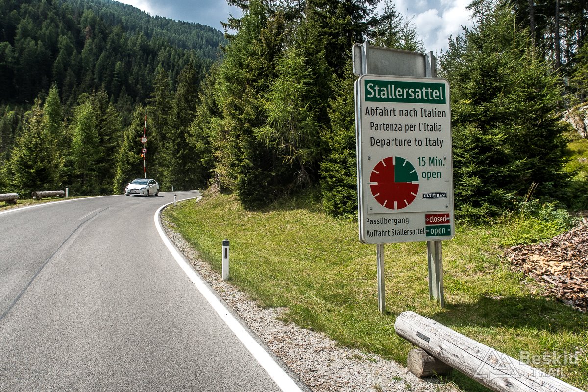 Przede mną najtrudniejszy, czyli najstromszy odcinek podjazdu. A dzięki wcześniej zamkniętej drogi, w zasadzie pokonuję go samotnie. Po dotarciu na Passo Stalle widzę, że i tu jest informacja o zamknięciu drogi (a pewnie i wcześniej na dole też takie informacje musiały się znaleźć, po stronie austriackiej, ponieważ ruch samochodowy jest znikomy). Dzięki temu mam przełęcz niemal tylko dla siebie :).