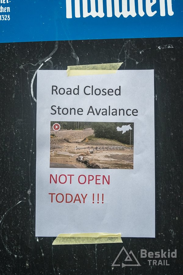 W dniu kiedy jechałem, na drogę wokół jeziora obsunęła się spora lawina kamienna, i konieczne było jej zamknięcie. Na szczęście szlak prowadzący z drugiej strony tego akwenu, dawał możliwość przejazdu, więc zamieniłem w myślach szosowe opony na gravelowe, i szutrowym objazdem z powrotem dotarłem na asfaltową nawierzchnię.