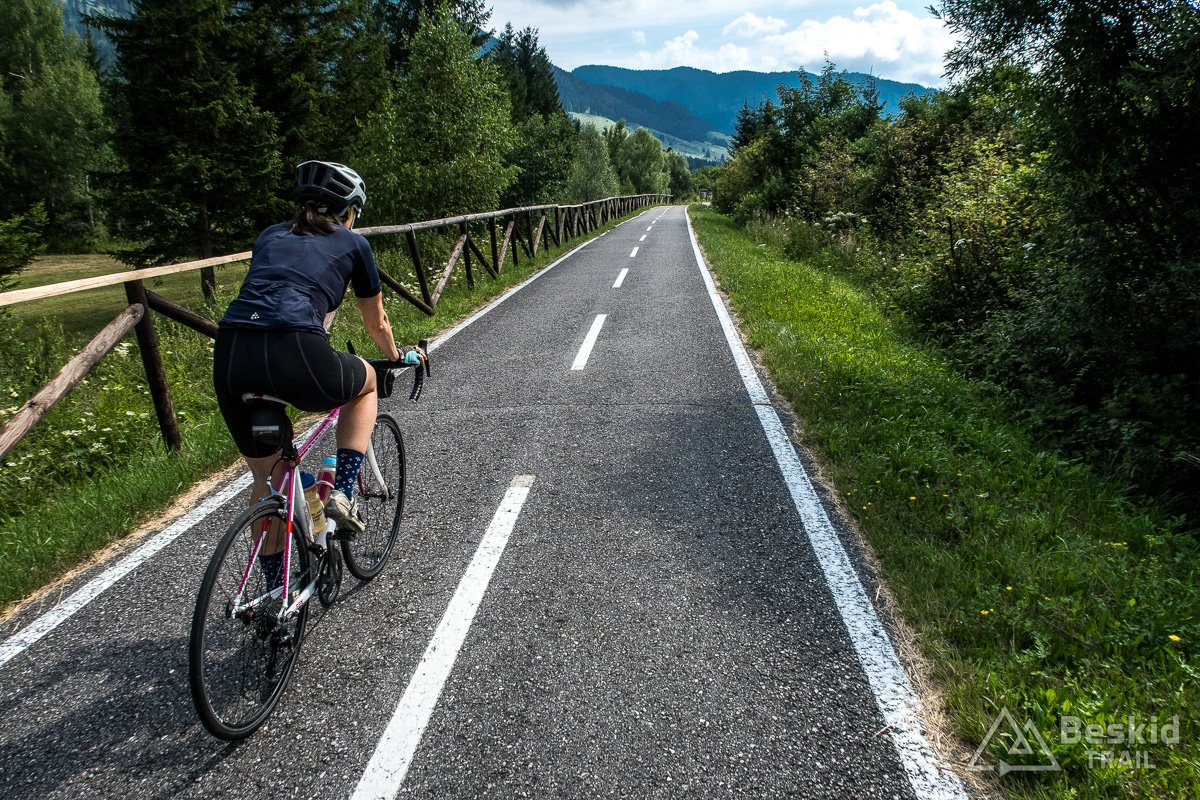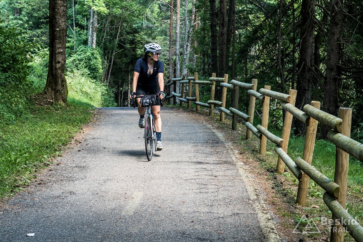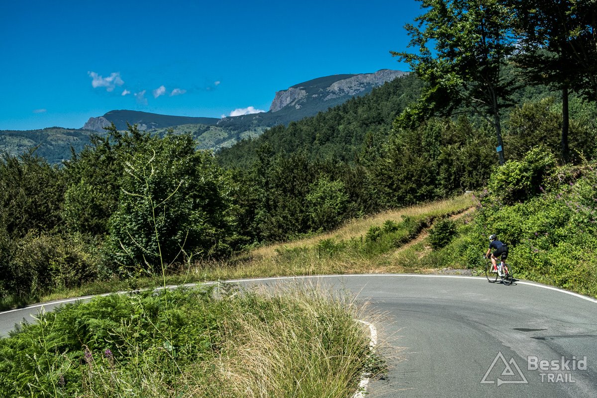 Mało kiedy rozpoczynamy wycieczkę od zjazdu, lecz tym razem priorytetem było dobre miejsce noclegowe, więc na początku mieliśmy przed sobą bardzo przyjemny, długi fragment w dół. Po drodze mijaliśmy wielu kolarzy (pewnie też dlatego, że była to sobota), więc tylko utwierdziliśmy się w przekonaniu, że nie tylko my na szosie odwiedzamy te góry.