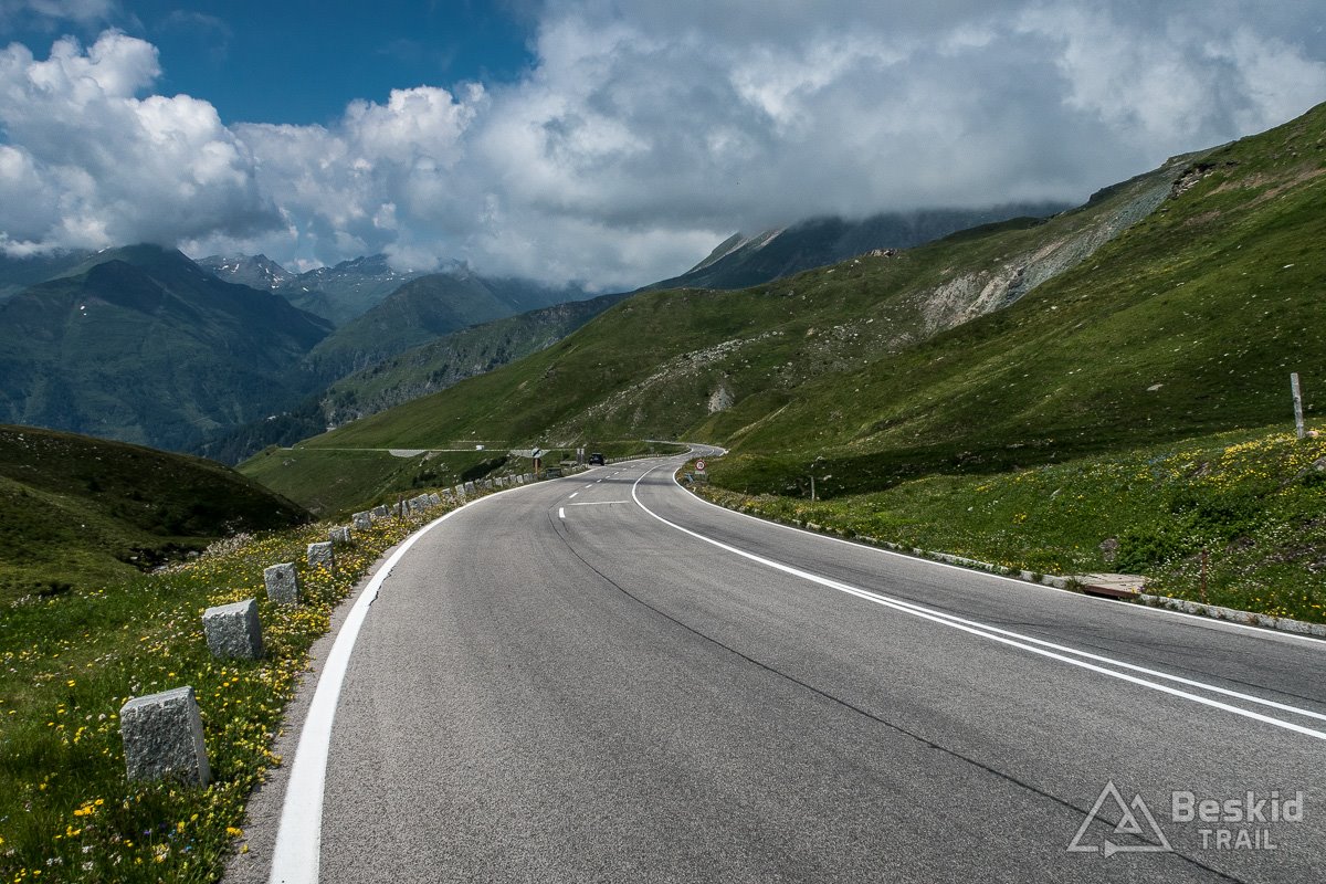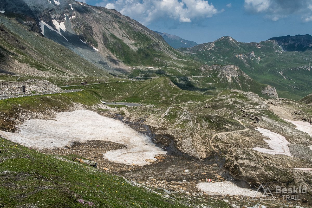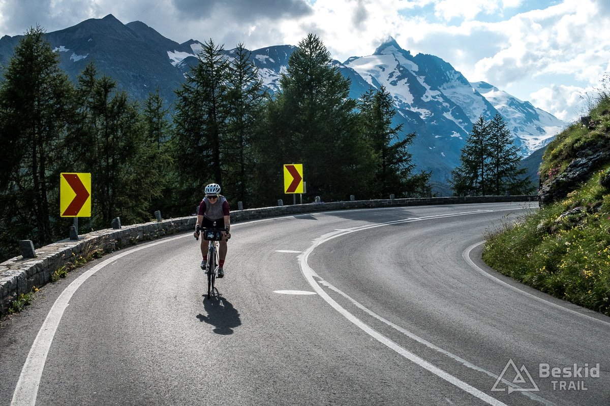 Pierwszym celem, po którym już chciałem kończyć trasę, była przełęcz Hochtor (2504 m n.p.m.). Jakoś udało się dotrzeć, a ponieważ sił jeszcze w nogach trochę było, postanowiliśmy pojechać dalej i zdobyć najwyższy punkt tej trasy –Edelweißspitze (2572 m n.p.m.). Kolejny odcinek jechało się już lepiej, więc i morale wzrosło. Po dotarciu na szczyt otrzymaliśmy wspaniałą nagrodę w postaci niesamowitego spektaklu chmur wijących się w dolinie, majestatycznych lodowców niemal na wyciągniecie ręki i cudnie poprowadzonej drogi, która idealnie doprowadziła nas na górę.