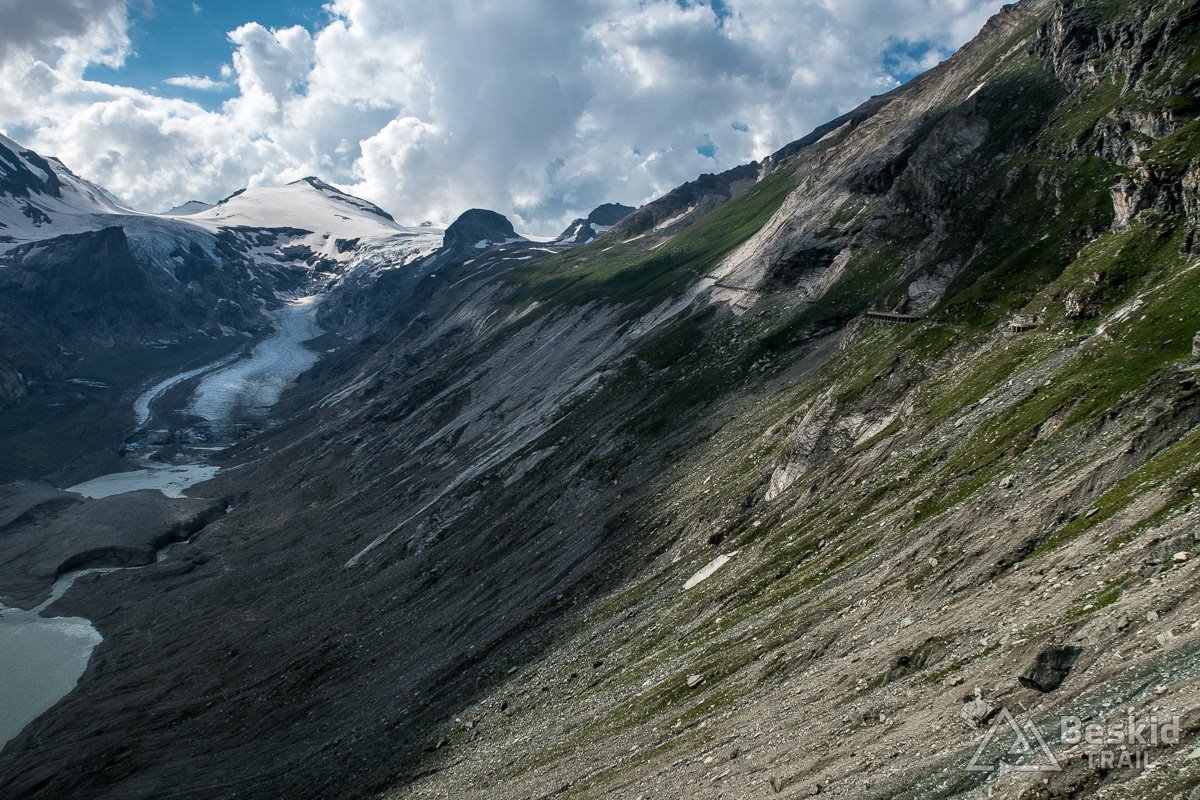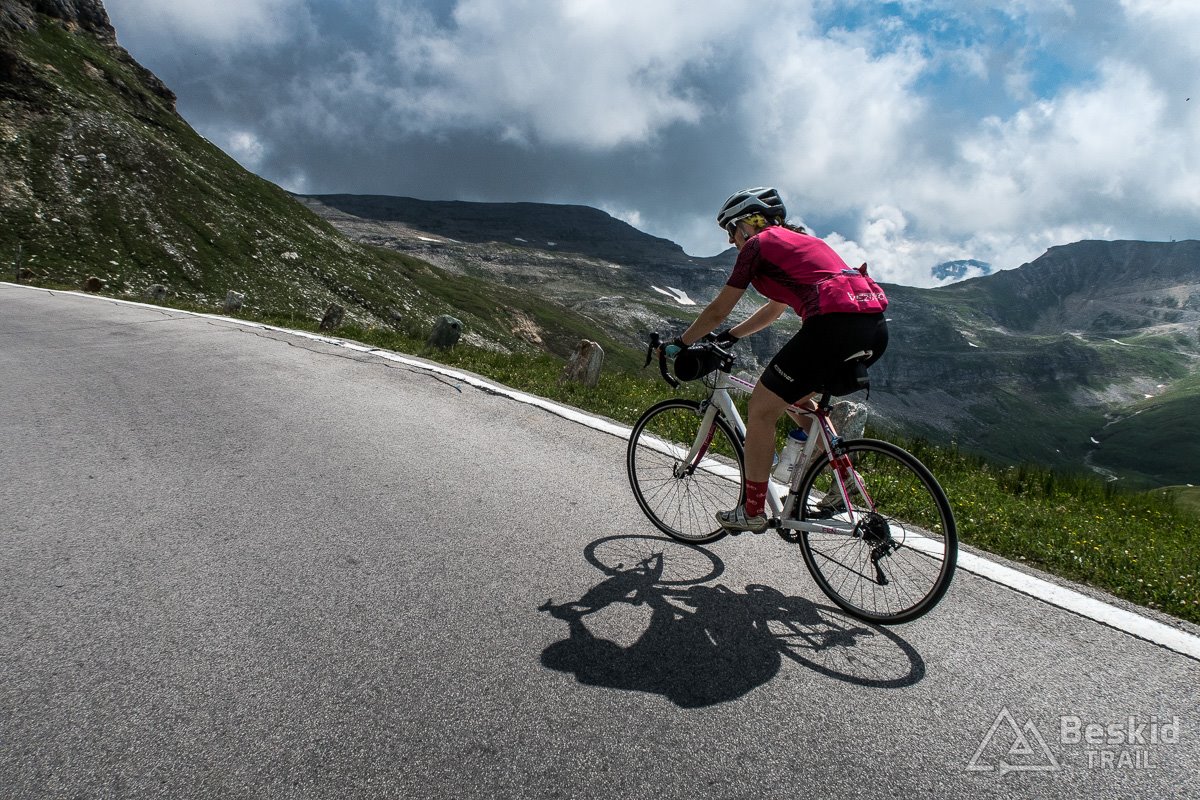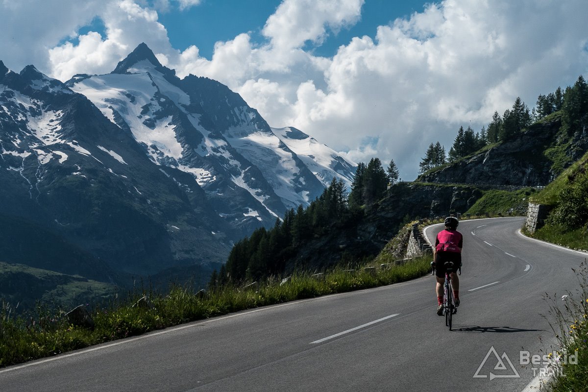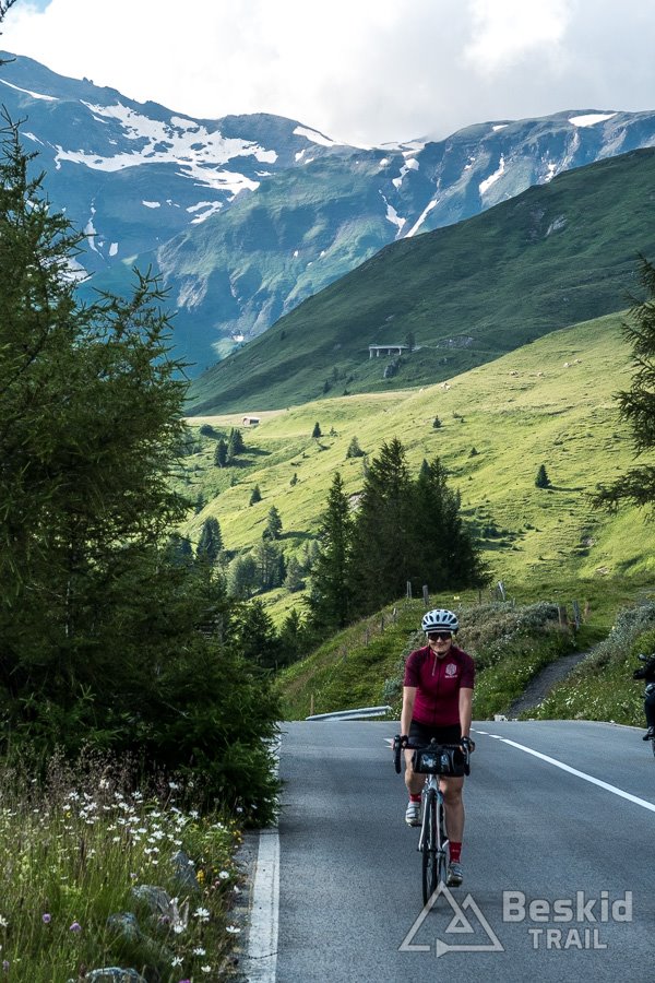 Pierwszym celem, po którym już chciałem kończyć trasę, była przełęcz Hochtor (2504 m n.p.m.). Jakoś udało się dotrzeć, a ponieważ sił jeszcze w nogach trochę było, postanowiliśmy pojechać dalej i zdobyć najwyższy punkt tej trasy –Edelweißspitze (2572 m n.p.m.). Kolejny odcinek jechało się już lepiej, więc i morale wzrosło. Po dotarciu na szczyt otrzymaliśmy wspaniałą nagrodę w postaci niesamowitego spektaklu chmur wijących się w dolinie, majestatycznych lodowców niemal na wyciągniecie ręki i cudnie poprowadzonej drogi, która idealnie doprowadziła nas na górę.