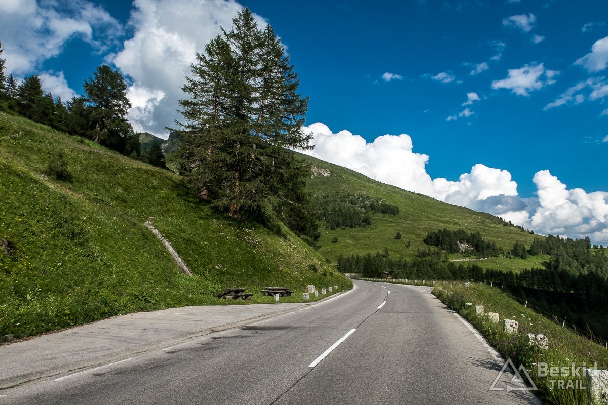 Droga na przełęcz to przede wszystkim doskonała nawierzchnia, idealnie przyjazne – choć z trudniejszymi chwilami – nachylenie i widoki, które z każdym pokonywanym metrem – cieszyły nas coraz bardziej. A do tego niewielki ruch motocyklowo-samochodowy – niemal sielanka szosowa :).