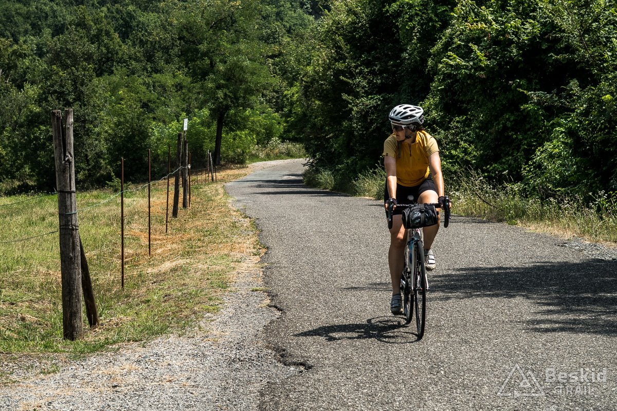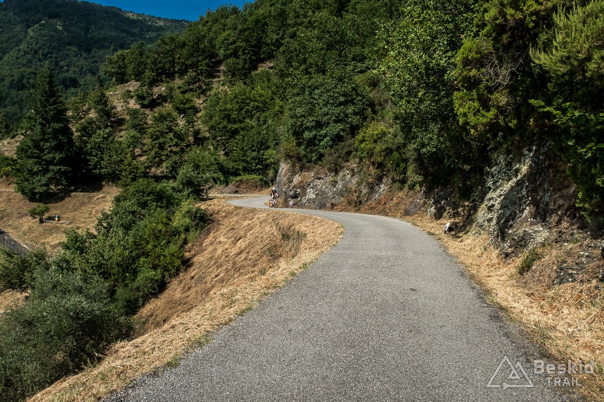 A trzeba przyznać, że Apeniny Liguryjskie, te znajdujące się dalej od wybrzeża, mają swój ciekawy, sielsko-wiejski klimat. Szczególnie, że mniej więcej połowa tras wytyczona była poza głównymi drogami. Było to co prawda nieco kosztem nawierzchni pod kołami, lecz na podjazdach nie miało to aż takiego znaczenia (były odcinki o słabszej jakości asfaltu, lecz bez dramatów). Natomiast na najciekawszych podjazdach i zjazdach, udało nam się trafić na bardzo dobre drogi.