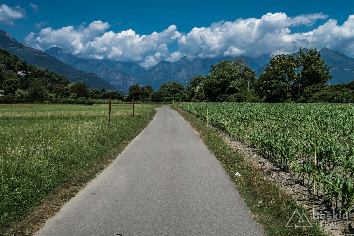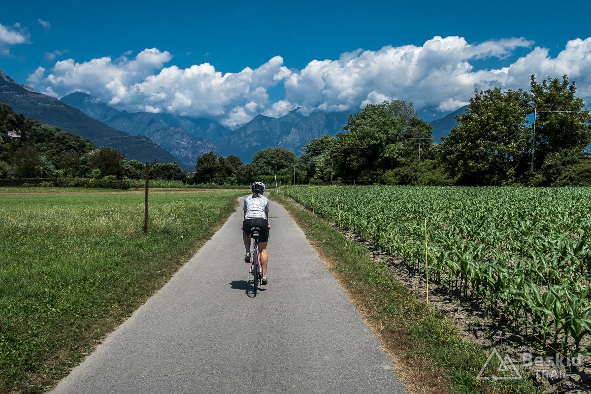 Początek trasy, zapewne jak większość kolarzy, zaplanowaliśmy z włoskiej Chiavenny. Czasu na rozgrzewkę w zasadzie nie było za wiele, bo niemal od razu zaczął się podjazd. I tak w zasadzie, z niewielkimi spokojniejszymi odcinkami, trwał do samej góry.