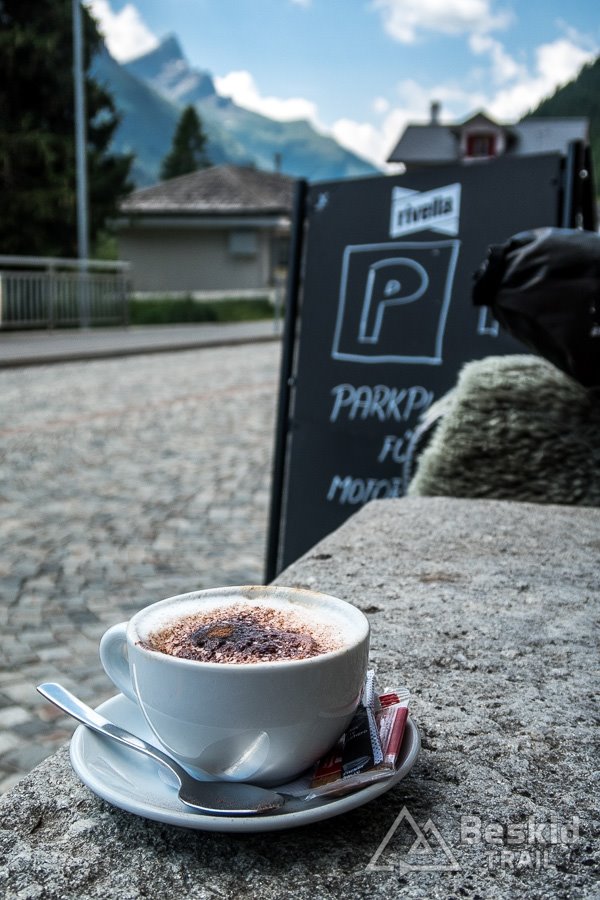 Oj, jakież to było doskonałe! Cudowny zjazd po doskonałej drodze, z niebywale precyzyjnie poprowadzonymi serpentynami. Życzę każdemu takich dróg :). Po zjechaniu do Splügen, udało mi się nabrać wody, napić się smacznej kawy w jednym z lokalnych barów i nieco odpocząć. Przede mną wszak powrót na przełęcz czyli bonusowe zdobycie 650 metrów. Wiedziałem jednak, że bez większej spiny mogę jechać, ponieważ Ola na spokojnie w międzyczasie delektowała się jednym z deserów (włoskim affogato) w restauracji nad Lago di Montespluga.