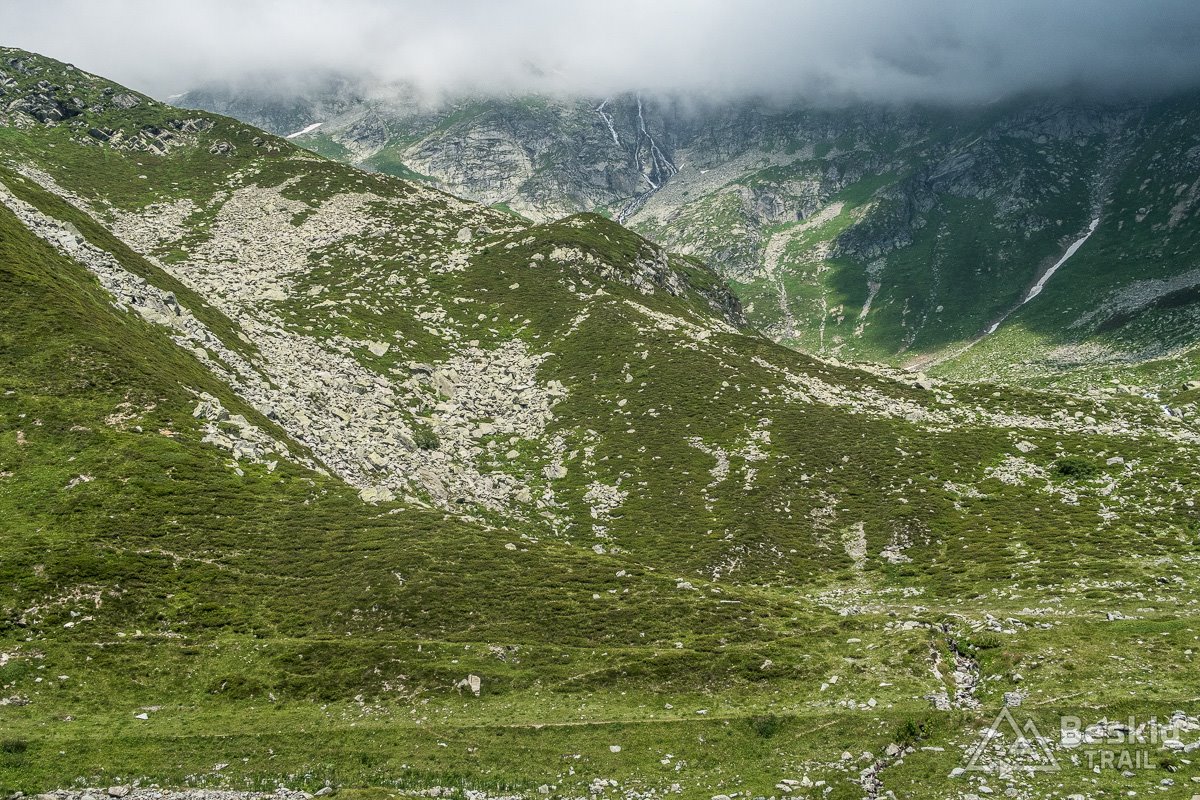 O dziwo, podjazd udało się pokonać w bardzo przyzwoitym, jak na mnie, czasie i w niespełna godzinę z powrotem zameldowałem się na przełęczy. Pogoda nawet stała się bardziej fotogeniczna, więc nie omieszkałem tego wykorzystać, i uwieczniłem jeszcze kilka kadrów zarówno w górnej części zjazdu, jak i poniżej.