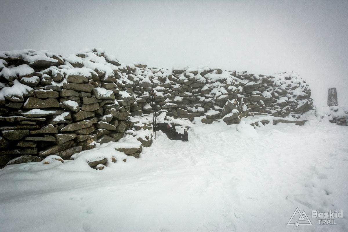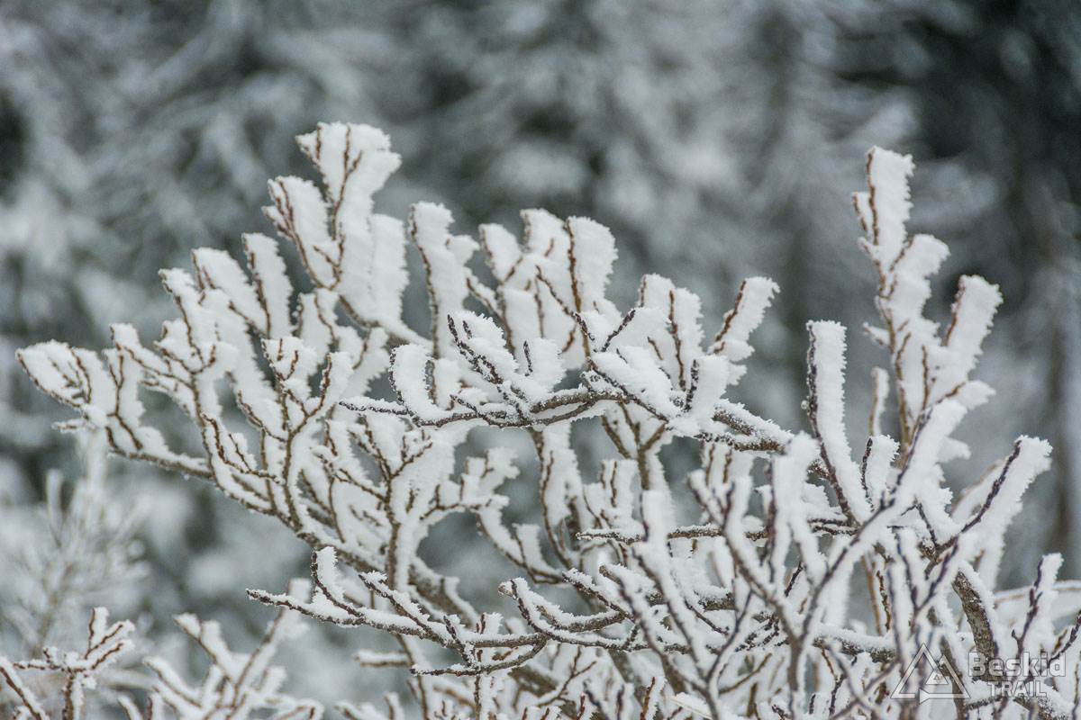 Wygospodarowałem więc nieco wolnego czasu i samotnie przeszedłem (tak! bez roweru 🙂 ) najbardziej standardową trasę, umożliwiającą zdobycie najwyższego szczytu Beskidów: Przełęcz Krowiarki – Sokolica – Babia Góra – Przełęcz Brona – Markowe Szczawiny – Przełęcz Krowiarki. W trakcie podejścia – żywej duszy, na wierzchołku – nikogo. Dopiero na zejściu spotykam 4 osoby – widać nie tylko ja mam czas w tygodniu na takie „przyjemności”.Wychodząc rano z Krowiarek, liczyłem trochę na spektakl chmur i słońca. Niestety jedynie w okolicach Sokolicy coś niewinnie się przewiewało, a wyżej w zasadzie szedłem już w chmurze. Czekałem kilkanaście minut na szczycie, lecz nadaremnie. Babia okazała się tego dnia wyjątkowo spokojną i łaskawą górą, ponieważ nawet wiatr aż tak nie doskwierał a minusowe temperatury nie były tak straszne.