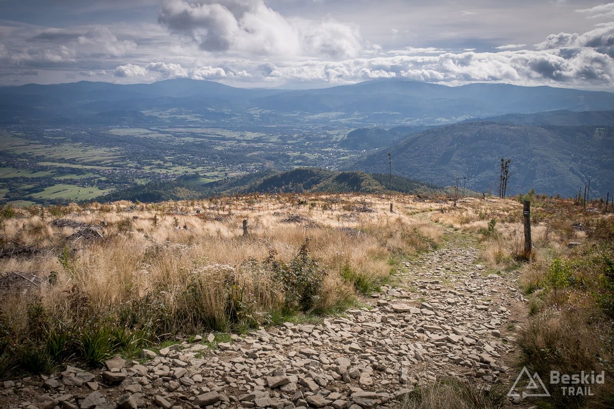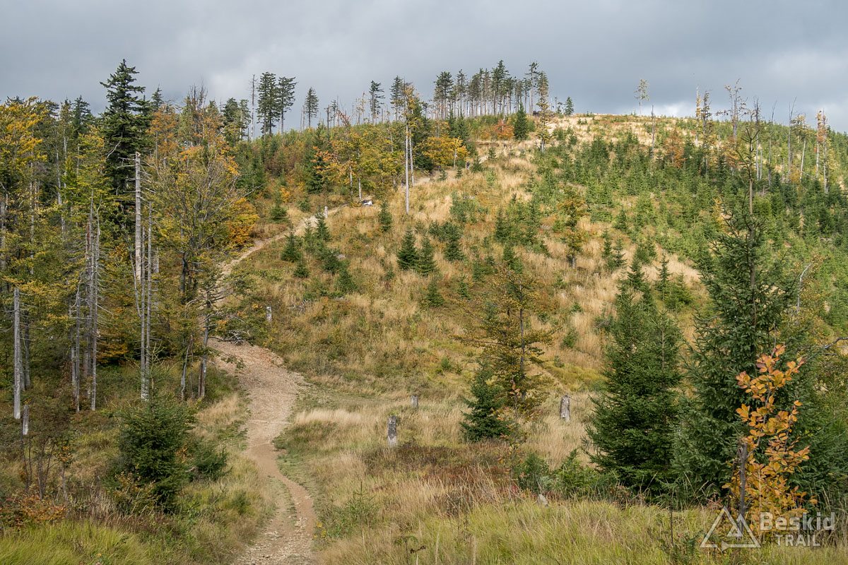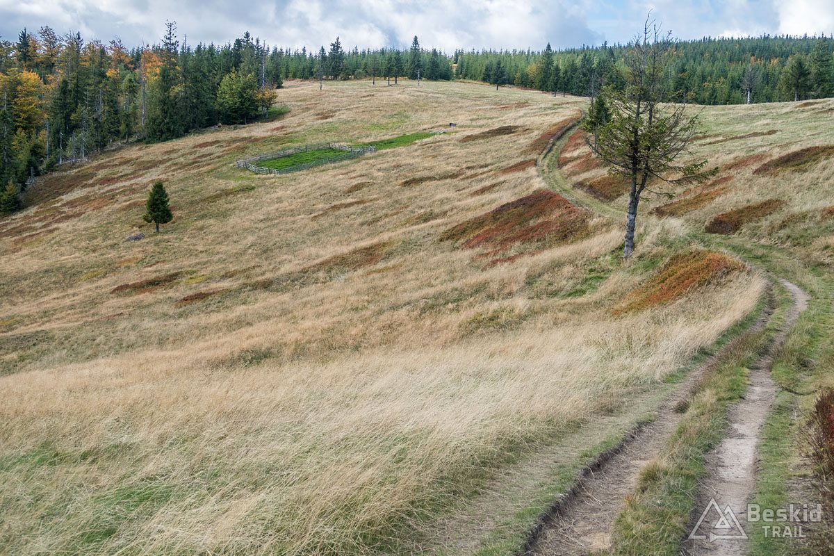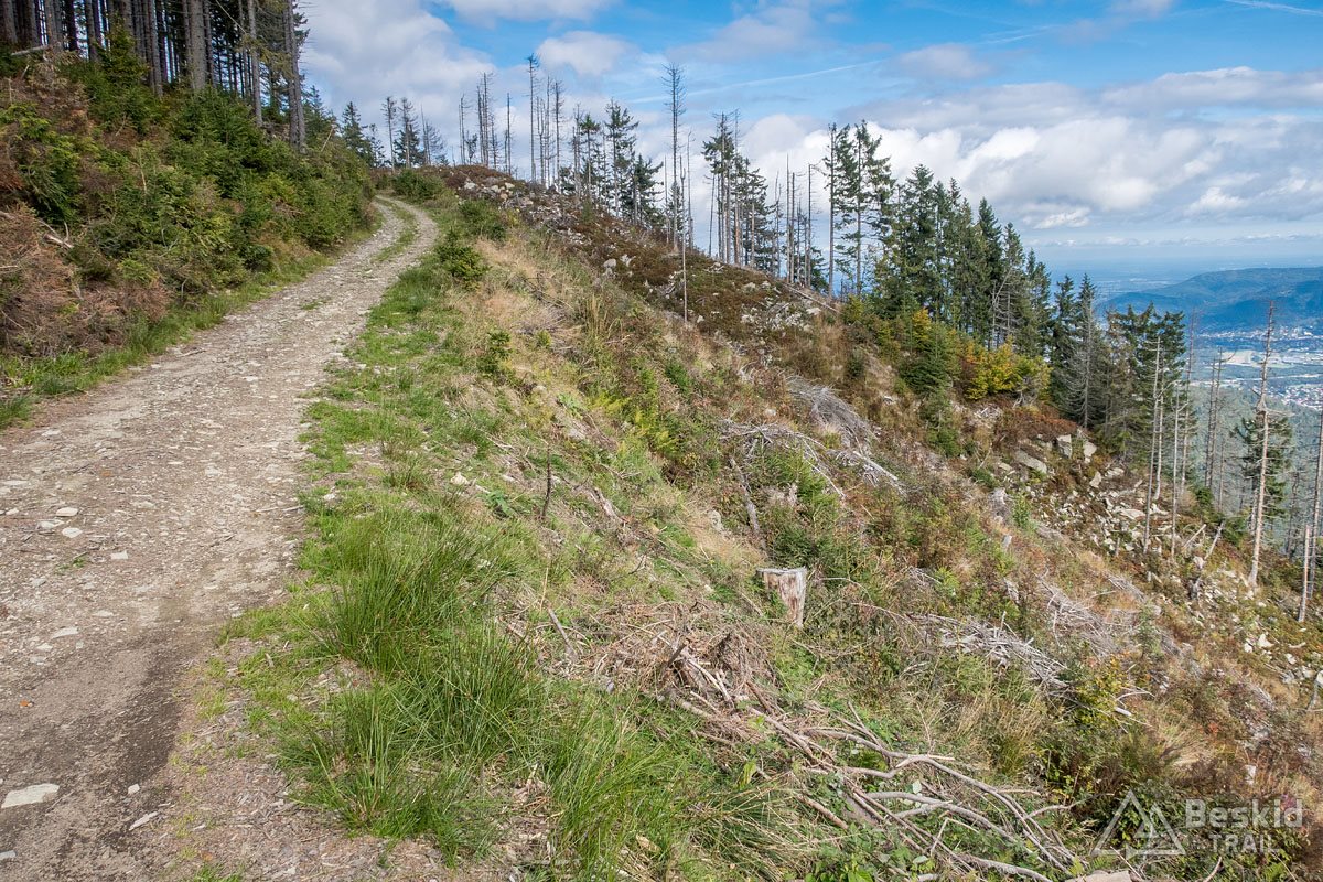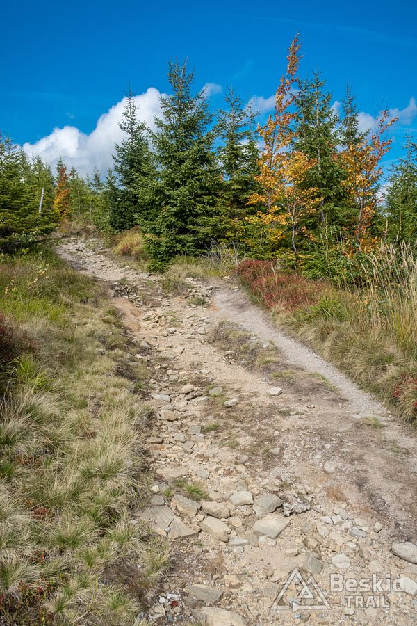 Na Magurce Wiślańskiej łapię czerwony szlak i zjeżdżam nim przez Halę Radziechowską i Glinne do Węgierskiej Górki. Bardzo lubię ten zjazd i zawsze z przyjemnością nim jadę – bardzo urozmaicony na całej swojej długości.