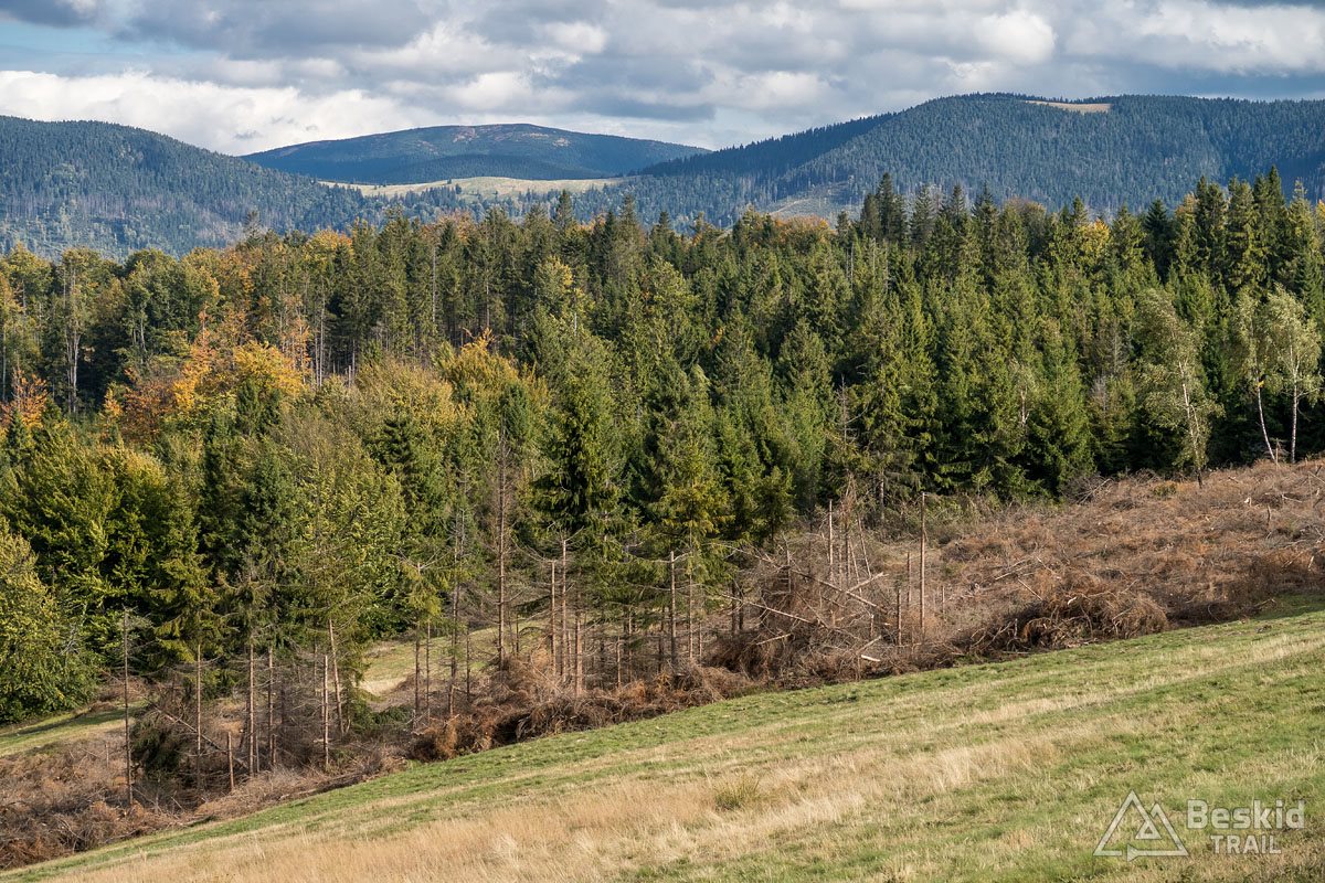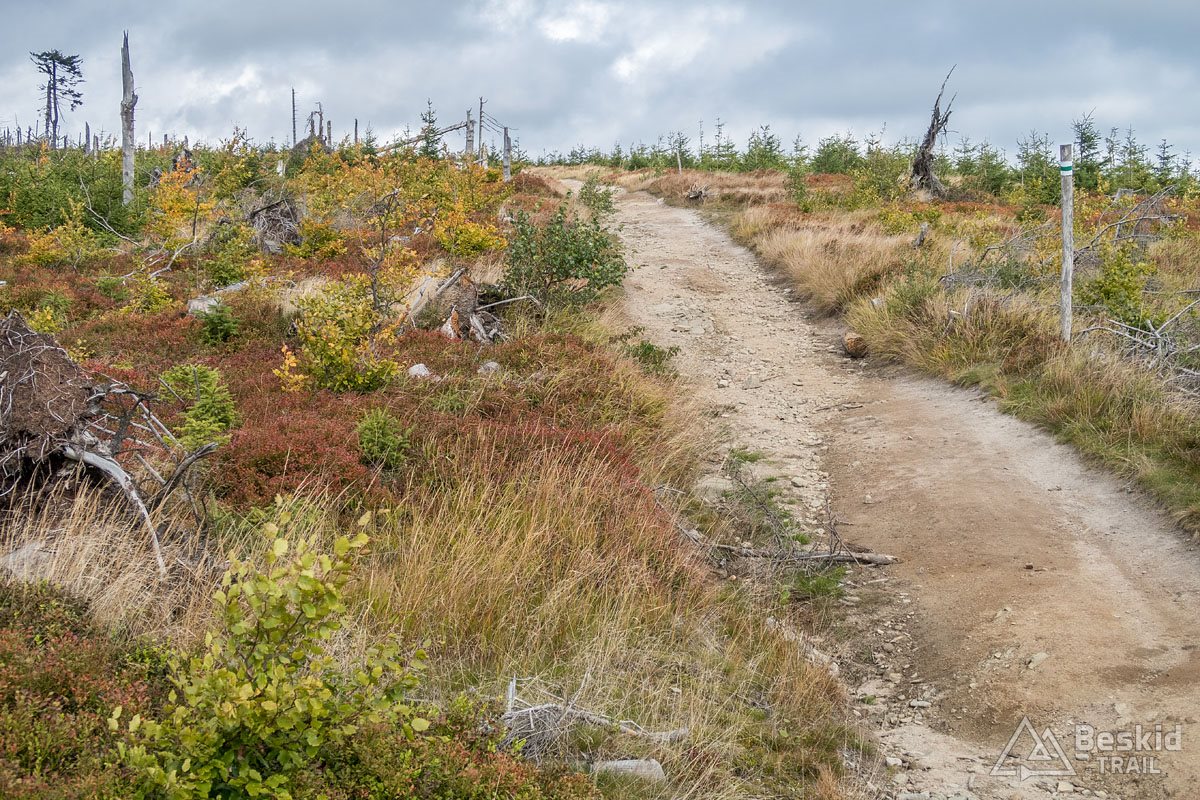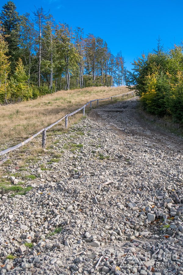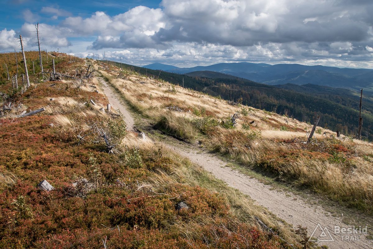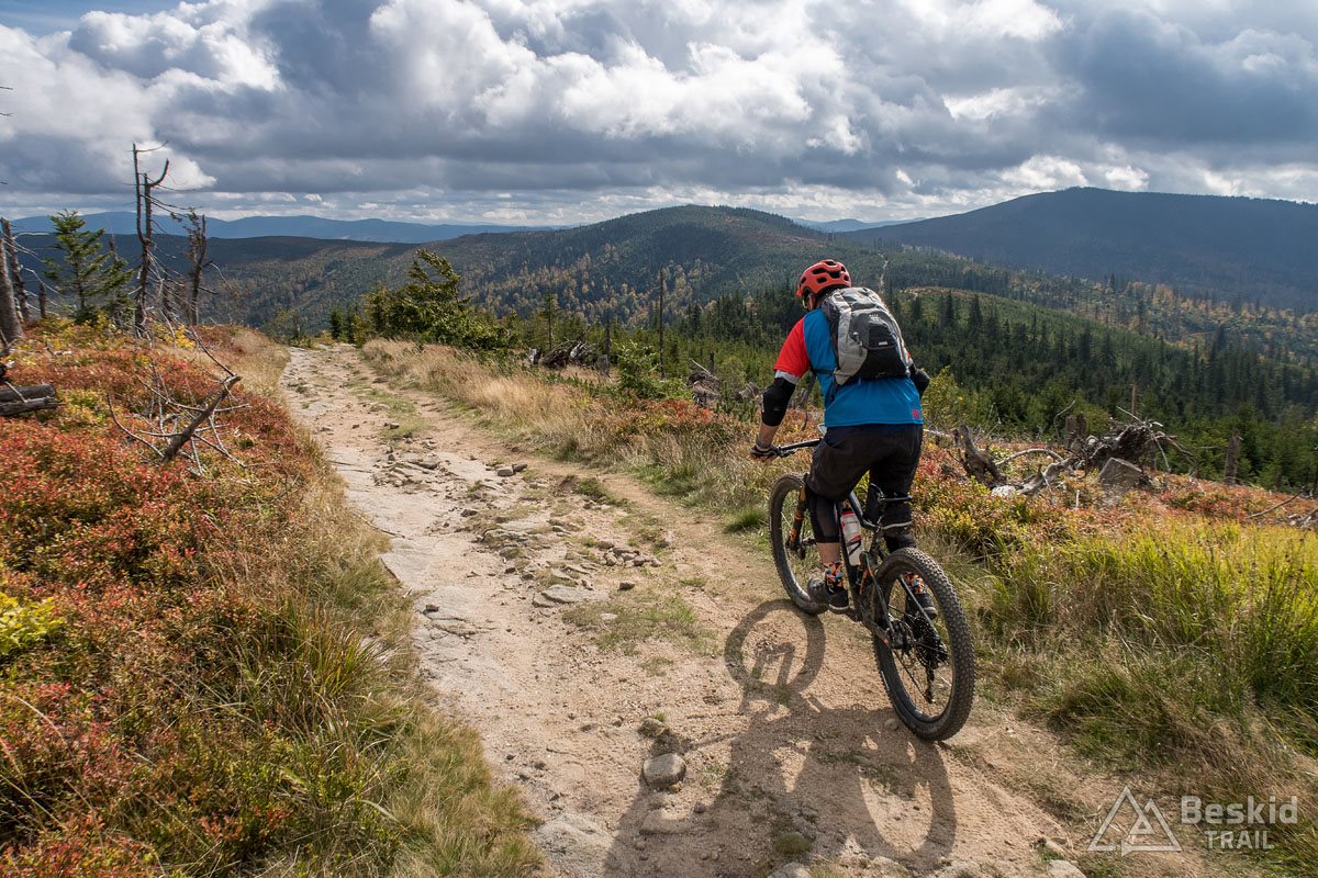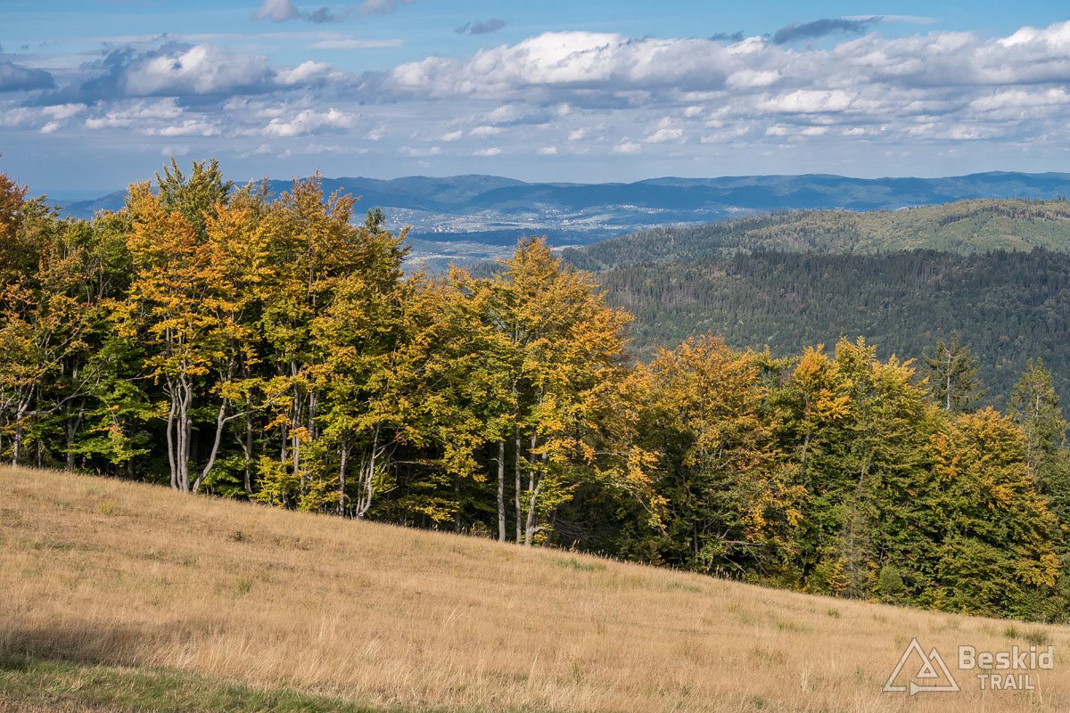 Na Magurce Wiślańskiej łapię czerwony szlak i zjeżdżam nim przez Halę Radziechowską i Glinne do Węgierskiej Górki. Bardzo lubię ten zjazd i zawsze z przyjemnością nim jadę – bardzo urozmaicony na całej swojej długości.