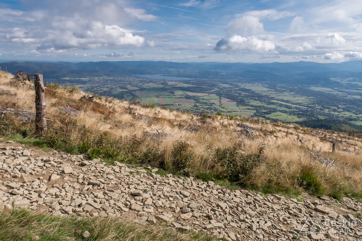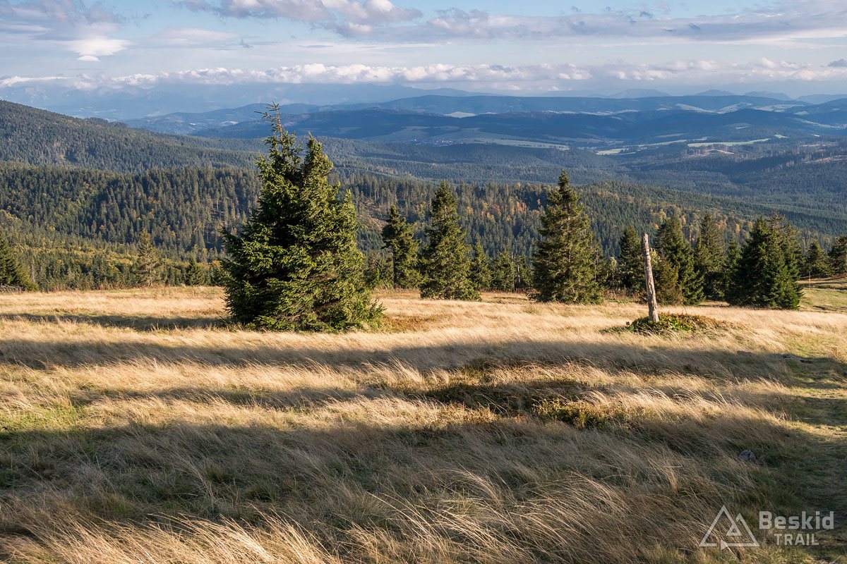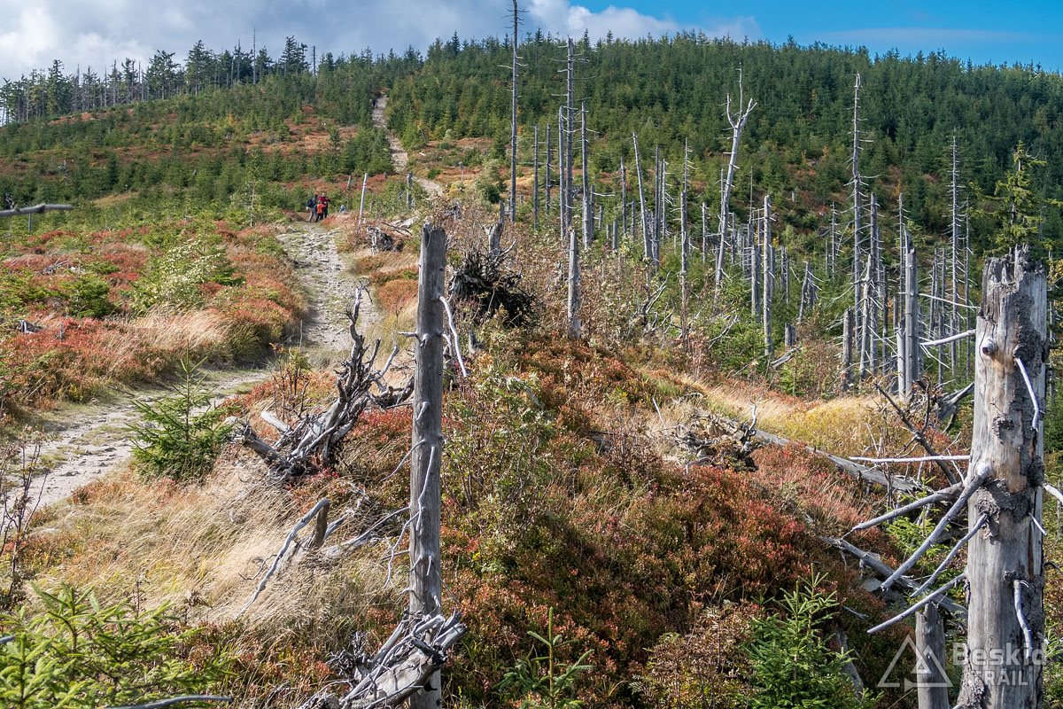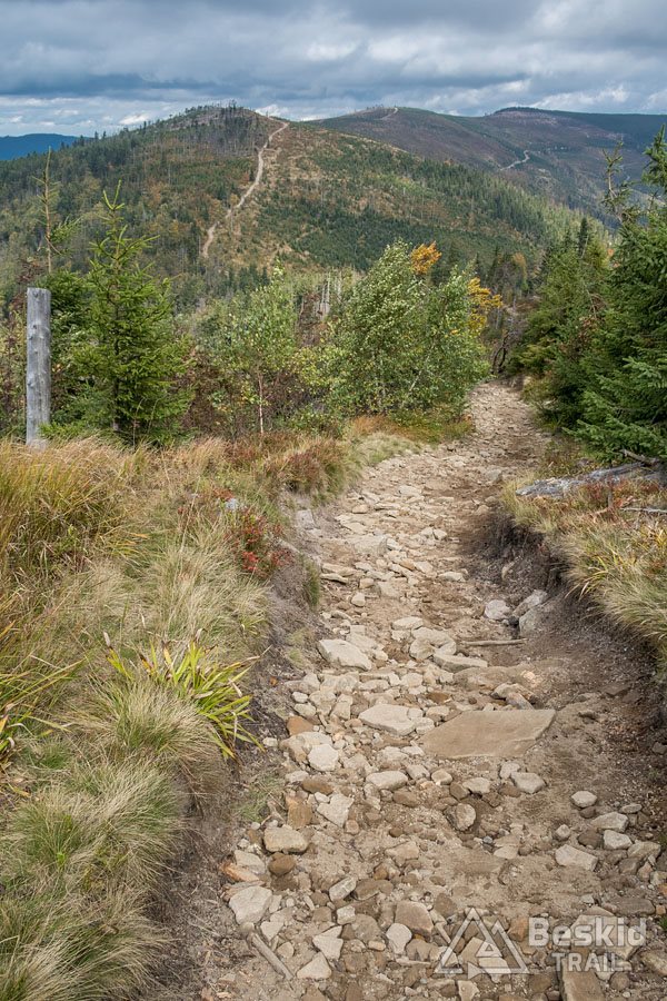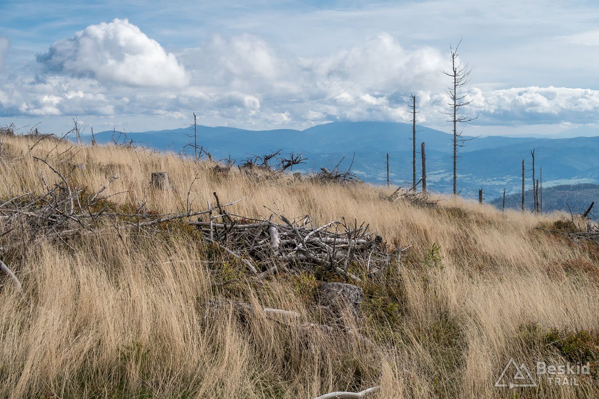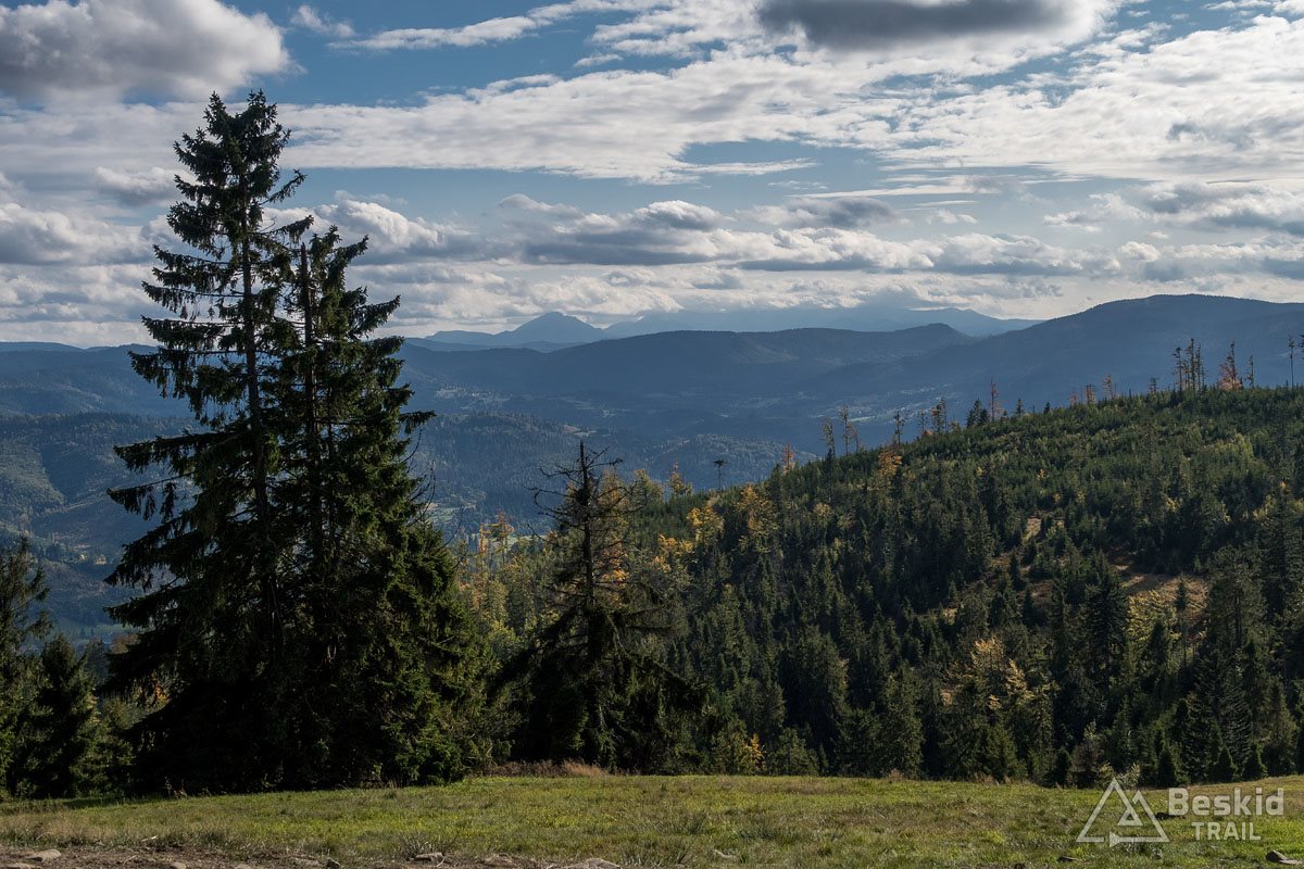 Na Magurce Wiślańskiej łapię czerwony szlak i zjeżdżam nim przez Halę Radziechowską i Glinne do Węgierskiej Górki. Bardzo lubię ten zjazd i zawsze z przyjemnością nim jadę – bardzo urozmaicony na całej swojej długości.
