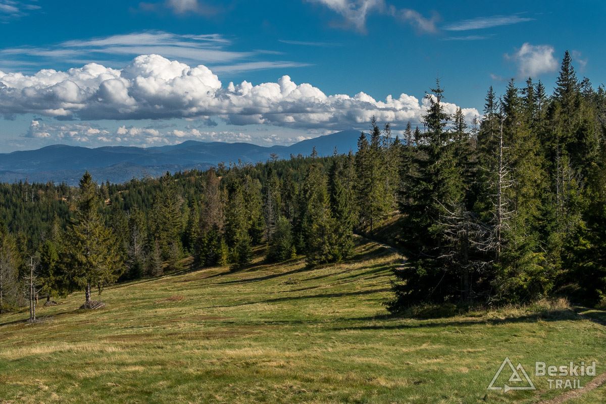 Na Hali Radziechowskiej, przy częściowo rozebranej chatce, robię krótki postój, i jadę dalej na Magurkę Radziechowską. Nie muszę wspominać, że przy dobrej, widokowej pogodzie, trudno oderwać wzrok od roztaczających się z Hali Radziechowskiej krajobrazów!