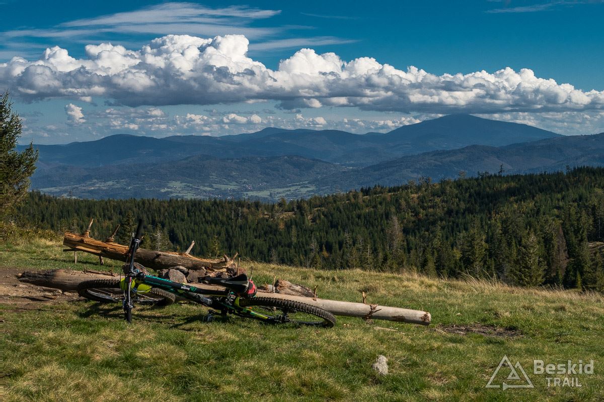 Po wjechaniu na  halę pod Ostrym, ponownie odbijam ze szlaku i grzbietem zdobywam wierzchołek. Przy okazji poznaję kilka polan, na których jest postawionych kilka chatek, spod których rozpościerają się przednie widoki! Z Ostrego zjeżdżam równie wymagającym co wcześniej singlem, tyle że już więcej na nim kamieni i korzeni, więc wciąż trzeba zachować na nim koncentrację.