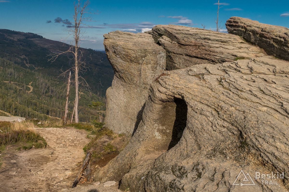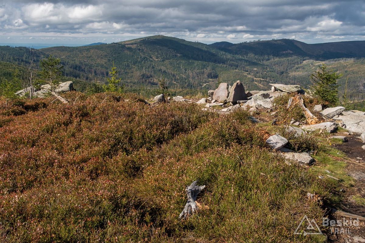 Głód i zmęczenie oraz bardzo klarowna widoczność, „zmuszają” mnie do spędzeniu kilku chwil na Malinowskiej Skale. By za bardzo nie ostygnąć, a na grzbiecie trochę wiało (przy temperaturze ok. 11 stopni), zabieram się do dalszej drogi. Krótki zjazd z Malinowskiej Skały zawsze przysparza nieco endorfin, szczególnie gdy pokona się całość, w dolnej części co jakiś czas zmienia się układ kamieni, więc zawsze jest coś nowego.