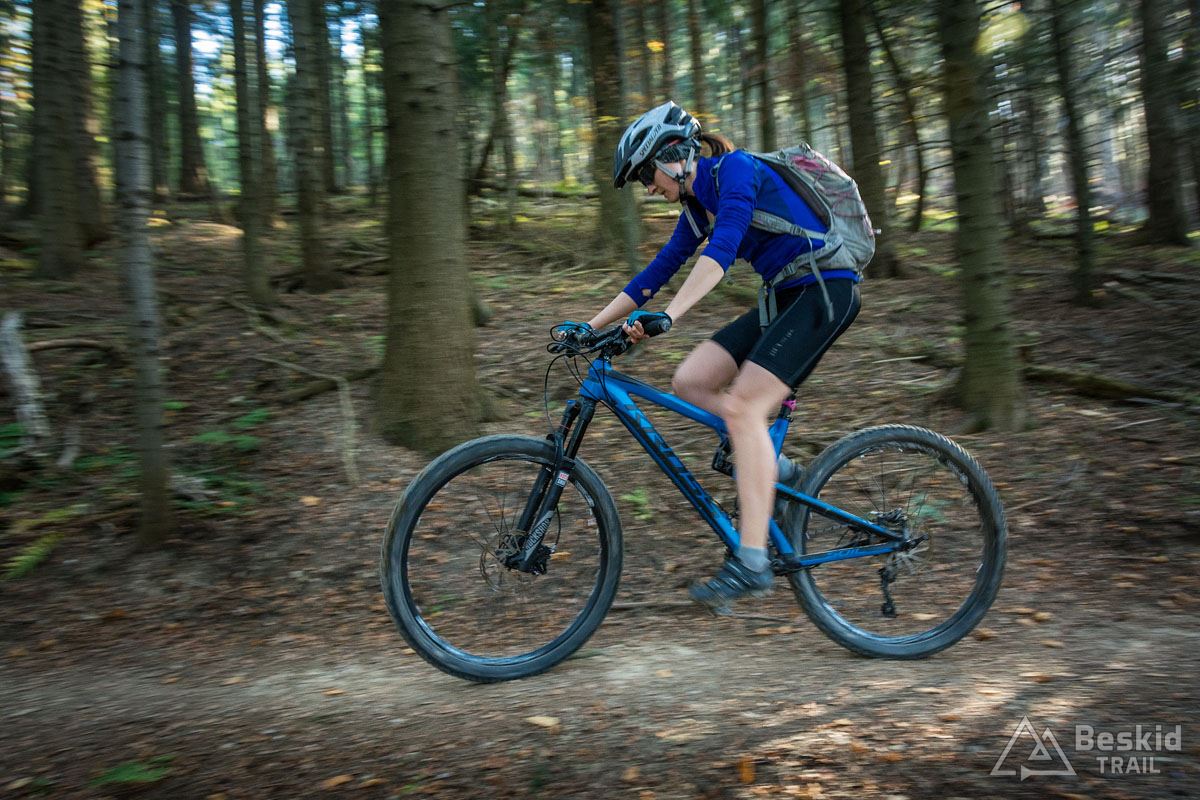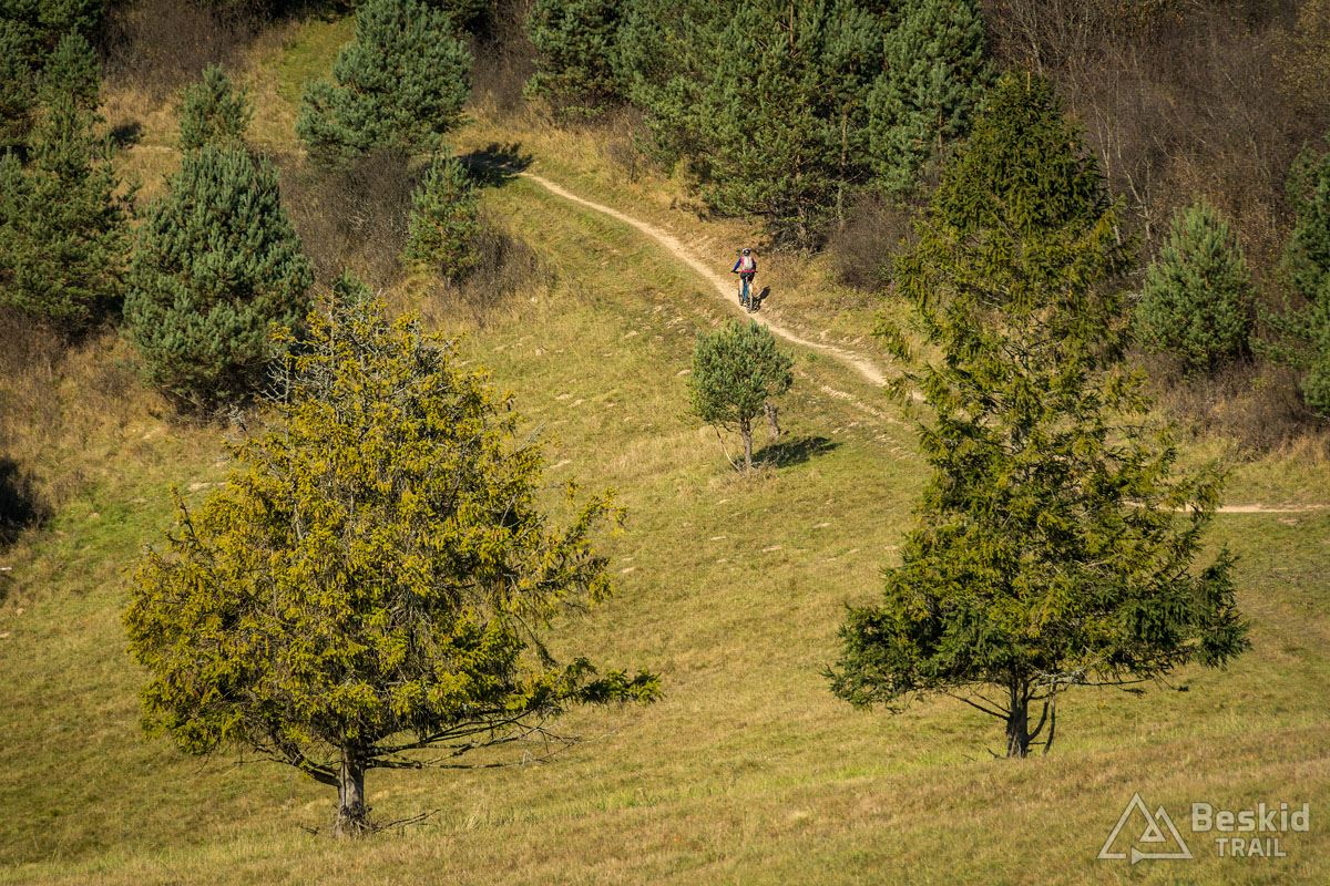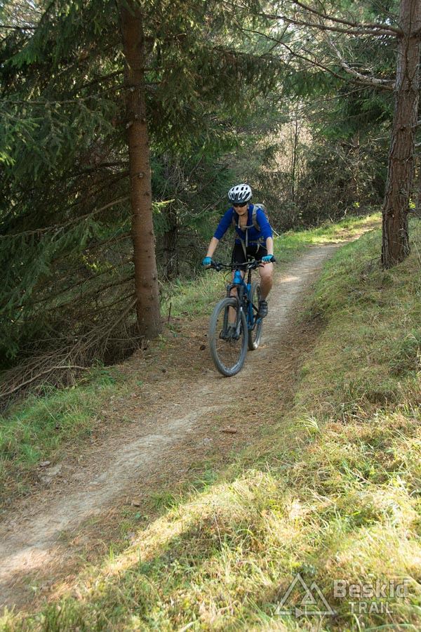 Singiel, którego podjazd na początku jest poprowadzony z dużą wodzą wyobraźni ;). Trzeba cały czas być skupionym gdzie i po czym się jedzie. Dość mocno pnie się w górę, miejscami naprawdę stromo (jak na ścieżkowy podjazd). Jest kilka miejsc, gdzie ewentualna utrata równowagi potknięcie będzie skutkować zsunięciem co najmniej kilka metrów po stromszym stoku. Lecz bez obaw – nie jest to takim dramatem – trzeba po prostu dobrze „czytać” teren przed sobą i wszystko będzie dobrze :).