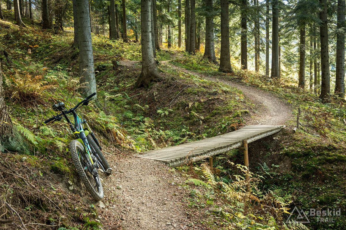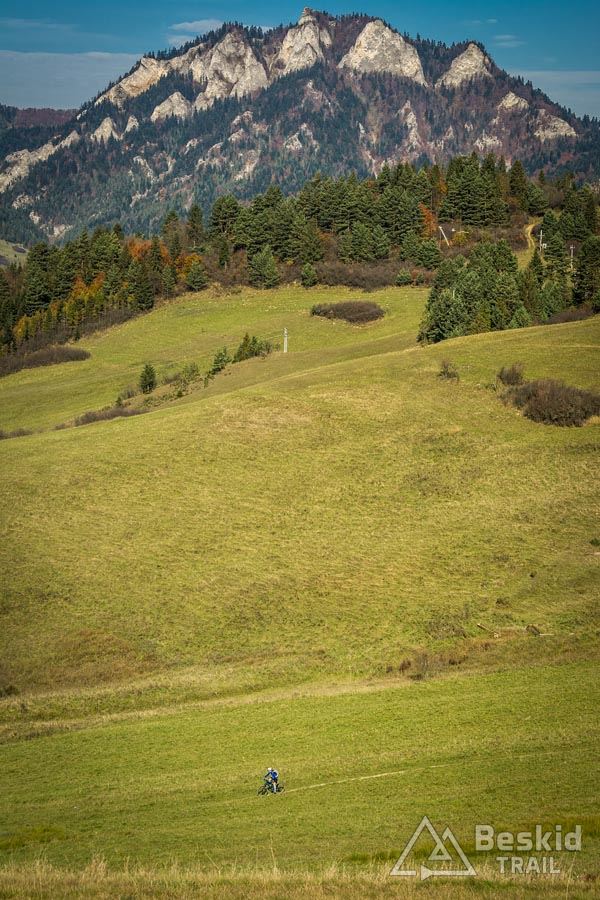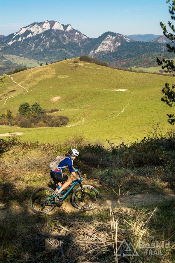 Po przejechaniu przez modrzewiowy las, otwiera się nam panorama na Špice i Trzy Korony. To znak, że zaczyna się część zjazdowa. Trasa poprowadzona po malowniczej łące, na której także poprowadzono niewielki, ale sensowny podjazd. Po wjechaniu na Špice, zaczyna się zabawa: liczne mniejsze bandy, wąskie skręty, szutrowo-ziemna nawierzchnia trzyma cały czas ridera na baczności. Po przejechaniu bardziej nachylonego terenu, zaczyna się dokręcanie oraz możliwość skakania na kilku stosunkowo niewielkich skoczniach. Ostatnie 500 metrów trasy to już tylko singlowy przejazd obok zagród.