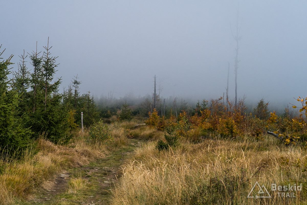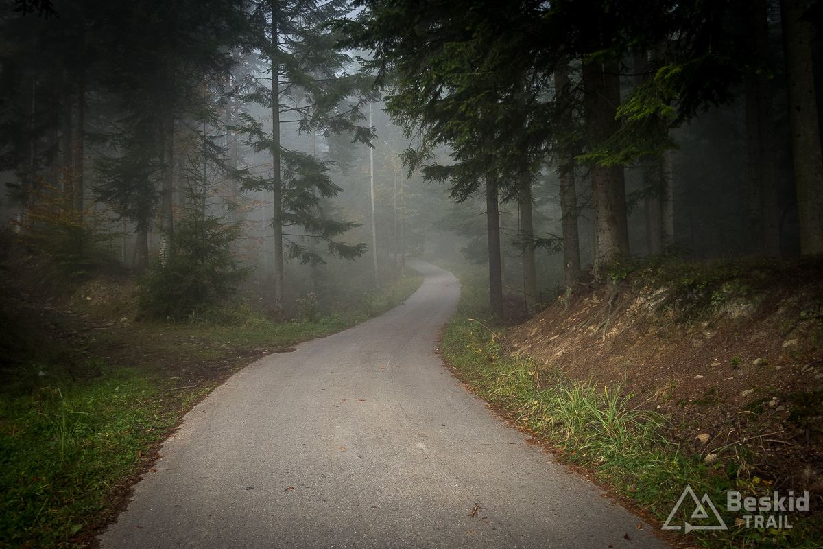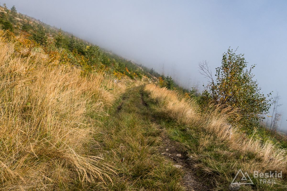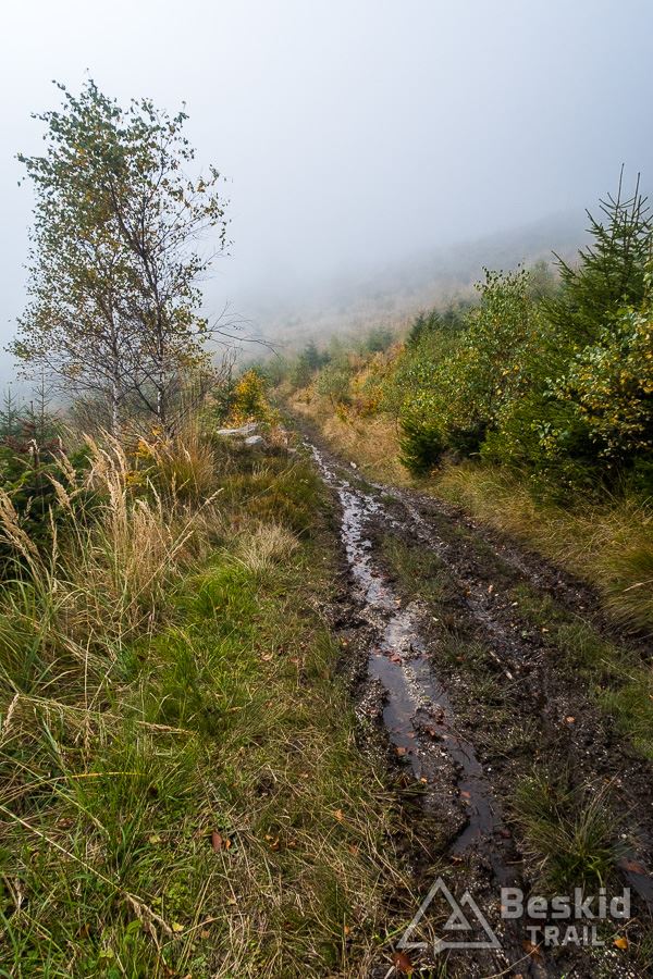 Ponownie docieram na Halę Radziechowską. Ograniczona widoczność nie zachęca do odpoczynku, więc jadę dalej na Glinne, skąd zamiast standardowo zjechać czerwonym szlakiem, wybieram nieco dziki, mniej znany wariant. Nota bene prowadzi nim trasa wyścigu HeroBeskidy (tyle, że w górę).