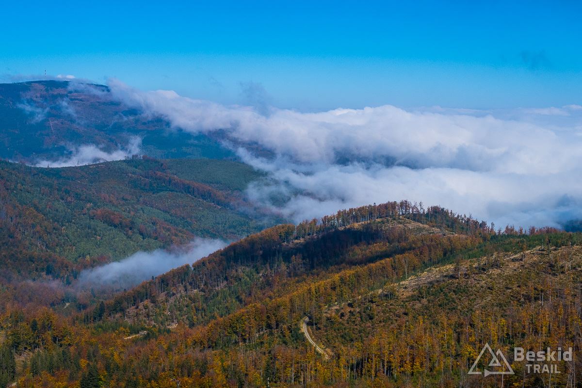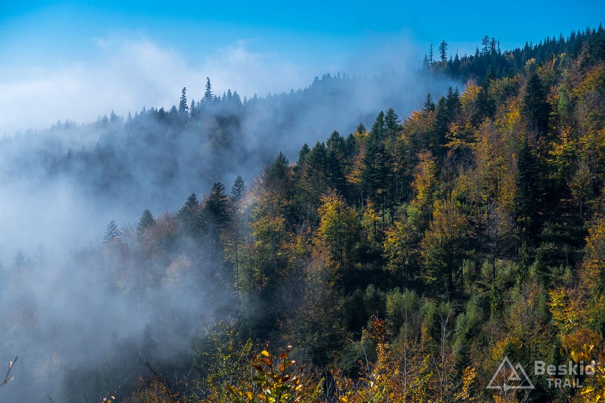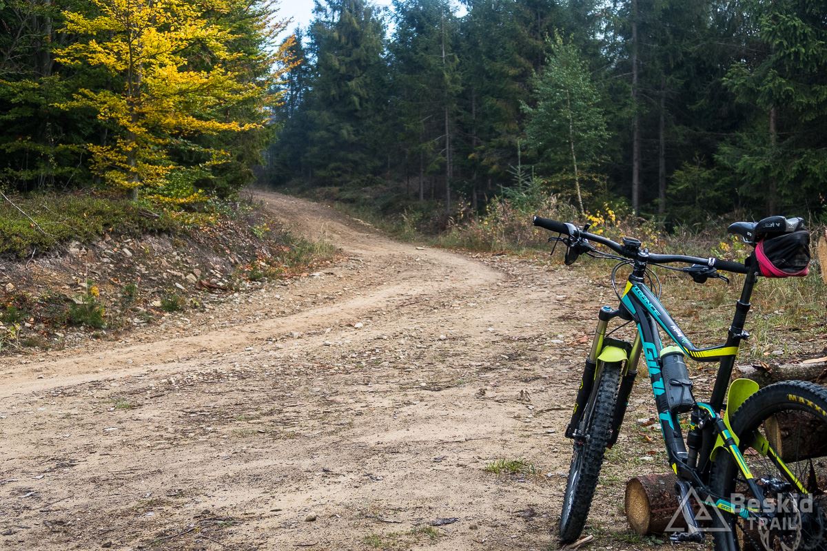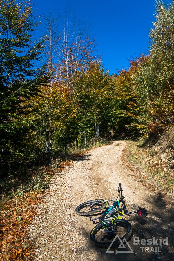 Kolory jesieni już na dobre zagościły w Beskidach. Na szlakach i ścieżkach nie ma jeszcze za dużo opadłych liści, więc warunki do jazdy na rowerze są co najmniej dobre. No, trzeba jeszcze trochę cieplej się ubrać (lub mieć dodatkową warstwę w plecaku 😉 ), ponieważ temperatury, pomimo słonecznych dni, są jednocyfrowe (na szczęście powyżej zera – jeszcze 😉 ).