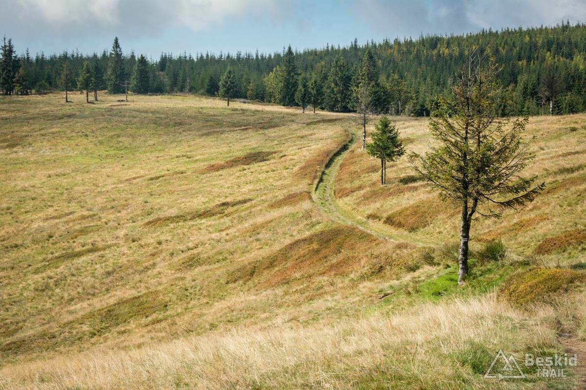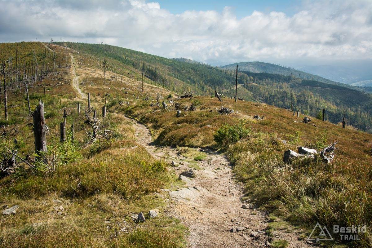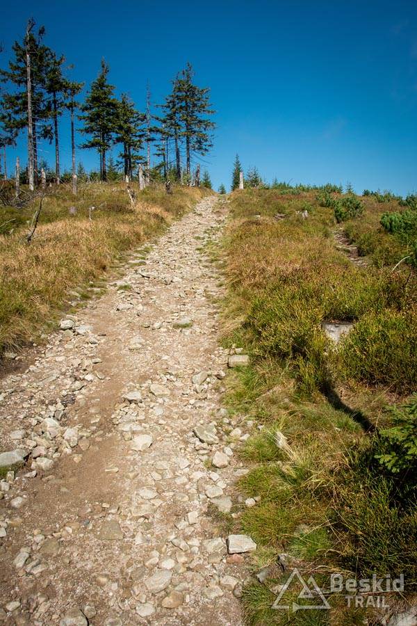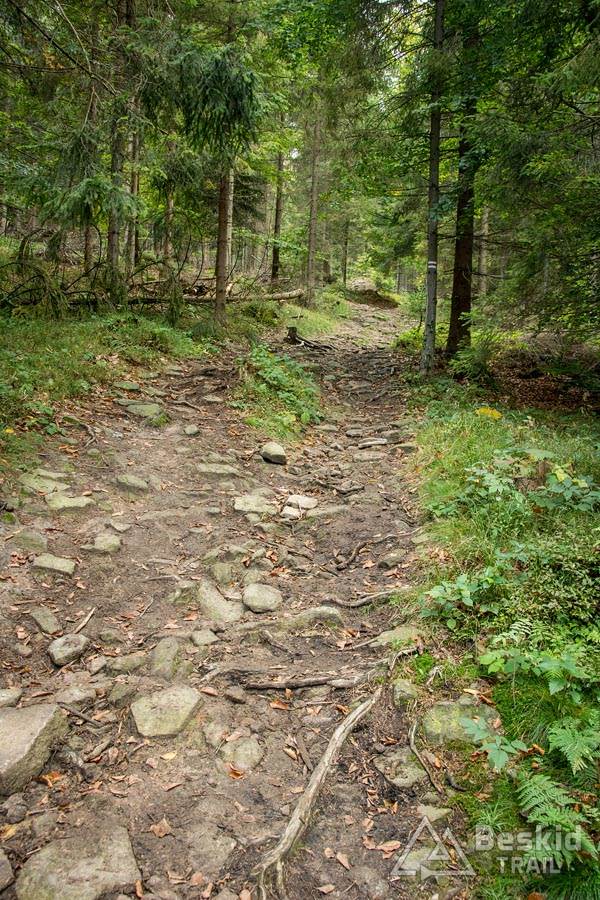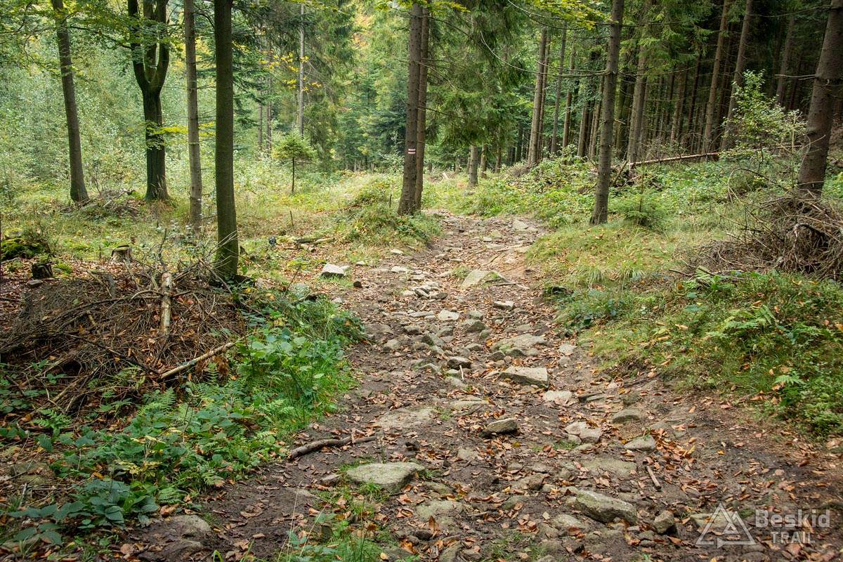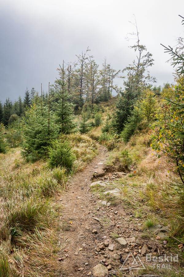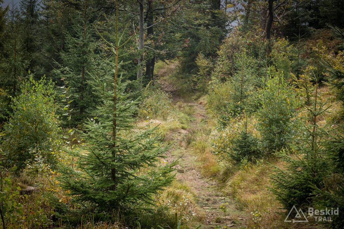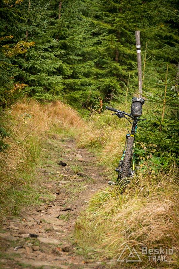 Trasa przejazdu nie należała do jakoś skomplikowanych. Z Węgierskiej Górki zielonym szlakiem pojechałem do Kamesznicy-Złatna, przy czym Czerwieńską Grapę ominąłem szlakiem rowerowym a na Baranią wjechałem połączeniem stokówek i czarnego szlaku. Nie chciałem bawić się w pchanie roweru, wychodząc z założenia, że szybciej od chodzenia przejadę kilkaset metrów więcej. I nawet pomimo całonocnego opadu deszczu, w górach nie było najgorzej – jedynie mijanie krzaków czy borowin nieco moczyło nogi i buty.