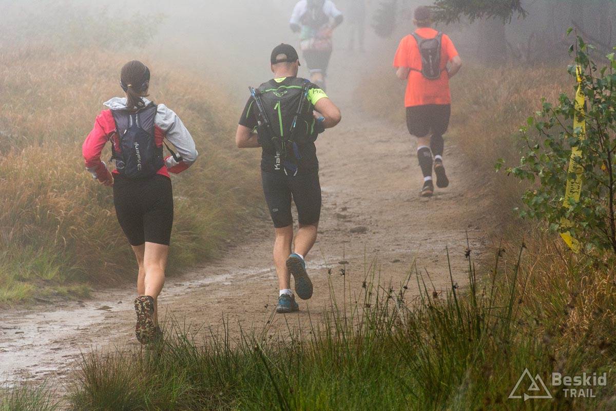 Z Baraniej już standardowo czerwonym szlakiem zjechałem do Węgierskiej Górski. Za szczytem mijałem jeszcze kilkadziesiąt osób z drugiej części stawki biegowej, a ostatni zawodnicy uśmiechali się do mnie jeszcze w okolicach Magurki Wiślańskiej. Spory rozrzut czasowy, przy czym wielu uczestników startowało w tych zawodach nie dla wyniku (przynajmniej tego dla pudła), ale dla samych siebie, dla wspólnej zabawy i spotkania znajomych. Bez wątpienia atmosfera na Baran Trail Race jest taką, gdzie każdy, od zawodowca po amatora będzie się czuł znakomicie.