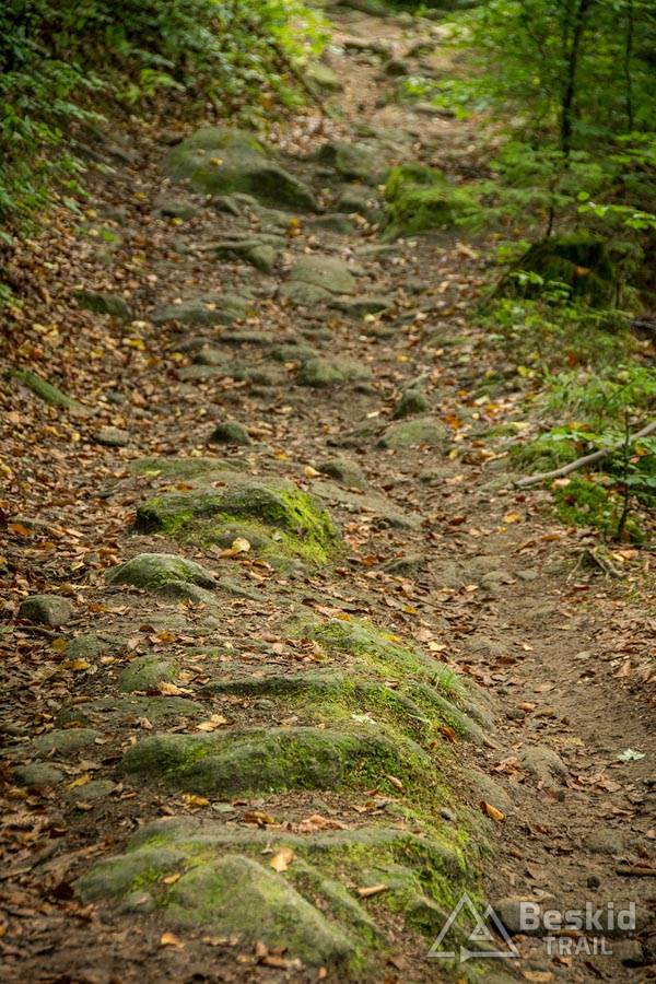 Przejazd czerwonym szlakiem zdecydowanie należy do moich ulubionych, i to w zasadzie w obu kierunkach, choć w dół jest przyjemniej :). Co prawda jest jeden niewielki podjazd/podejście na Glinne (bo wcześniejsze hopki bierze się z rozpędu 😉 ), ale zostaje nam to wynagrodzone dłuższym zjazdem. Szczególnie ostatnie kilometry szlaku są niezłą zabawą – szybkie i techniczne sekcje, kamienie połączone z korzeniami i singlowe odcinki – idealne na zakończenie każdego tripa :).