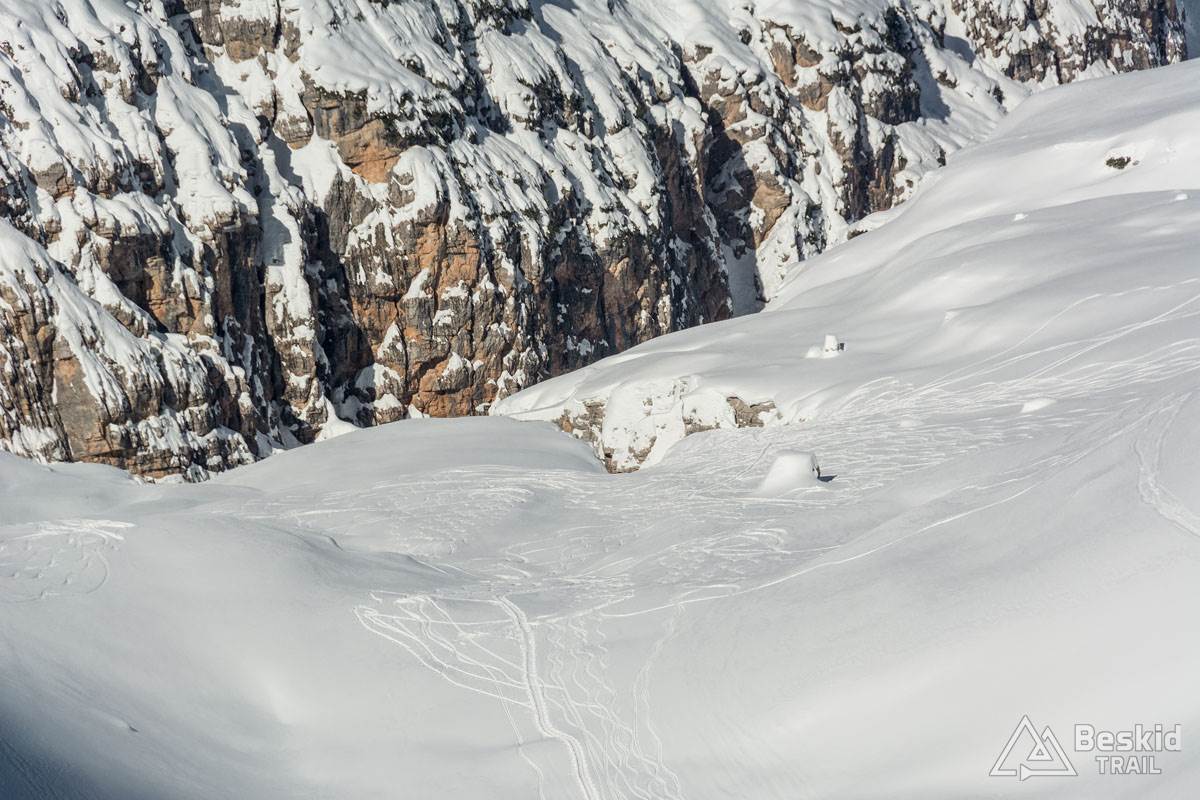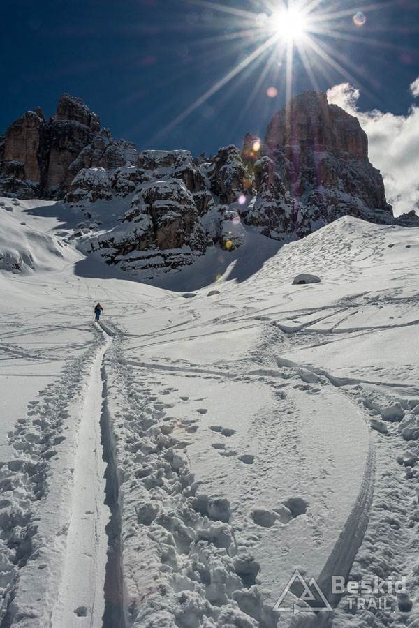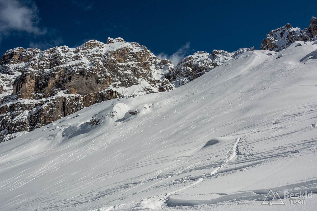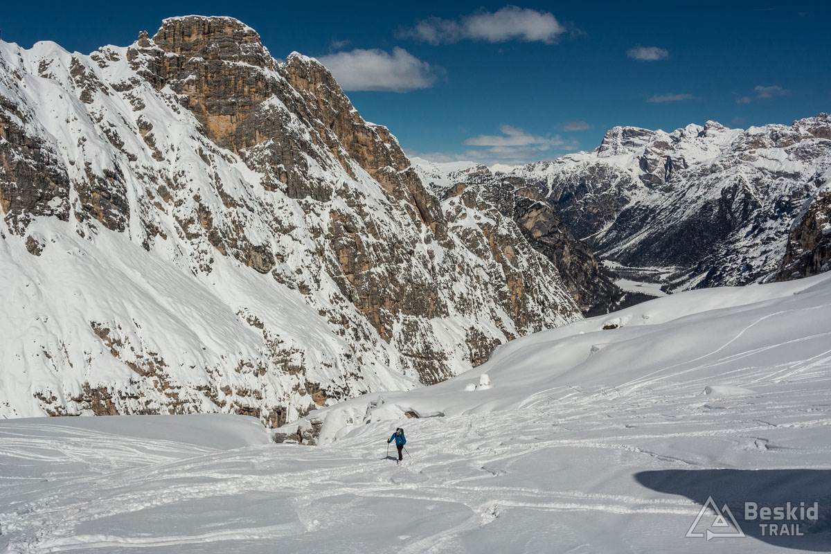 Jednym z zaplanowanych celów podczas tego wyjazdu była przełęcz Forcella Cristallo (2 808 m n.p.m.). Wycieczka na nią idealnie wpasowała się w oczekiwany kierunek zjazdu (który też był drogą podejścia) – północy, ponieważ dawał sporą gwarancję dobrego śniegu, niezależnie od pory dnia.
