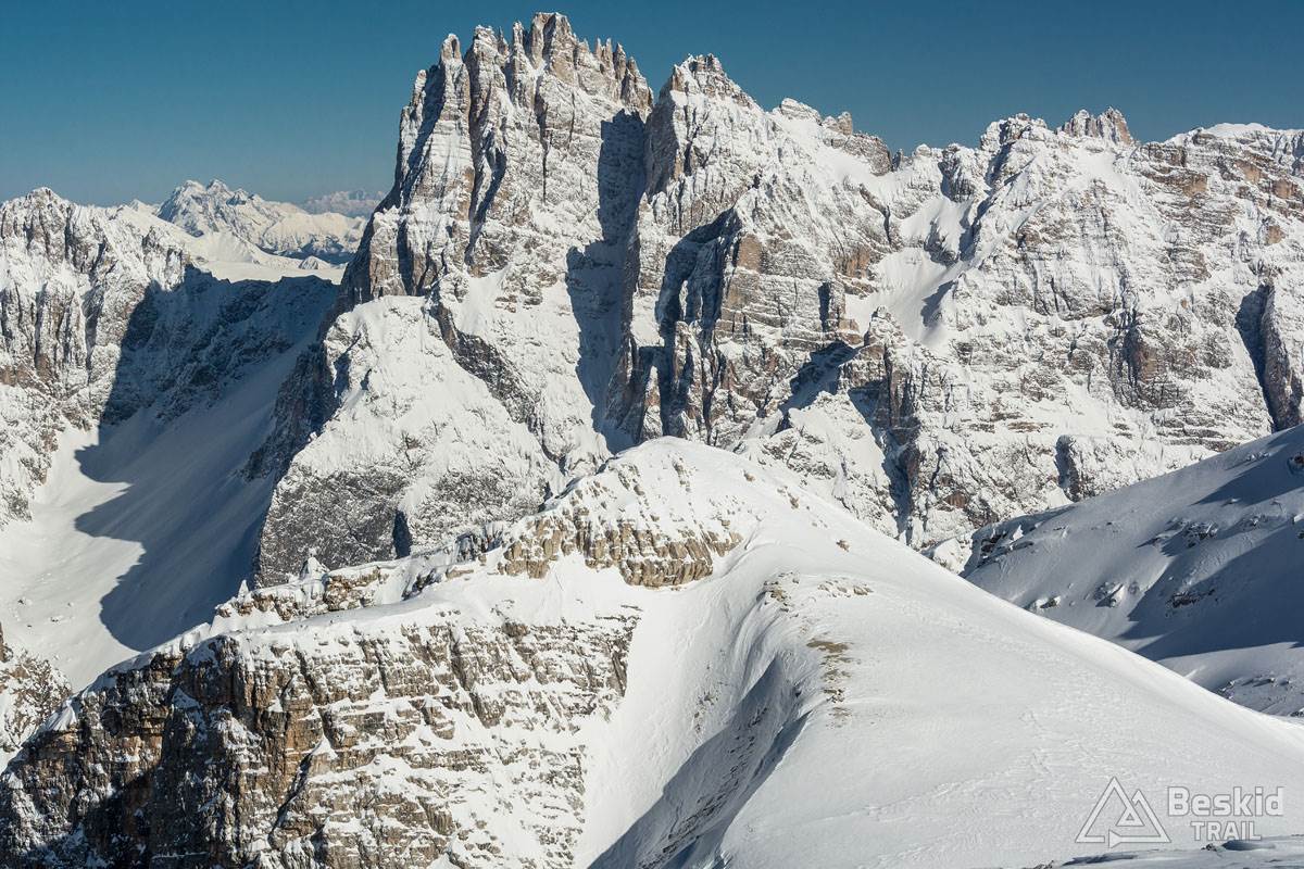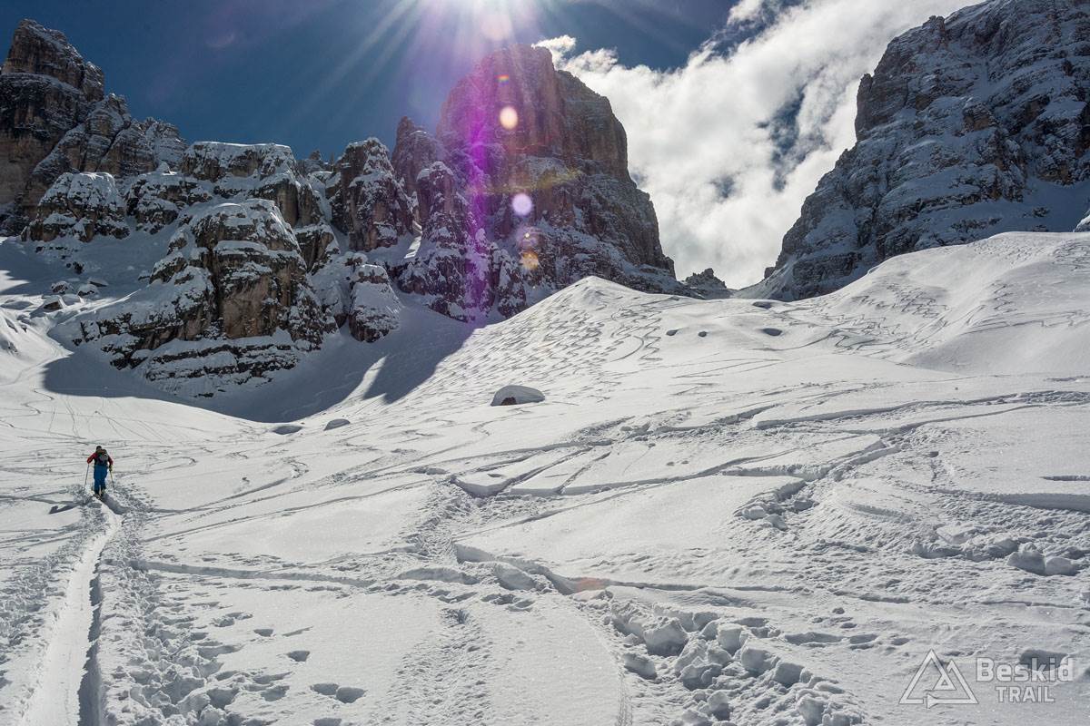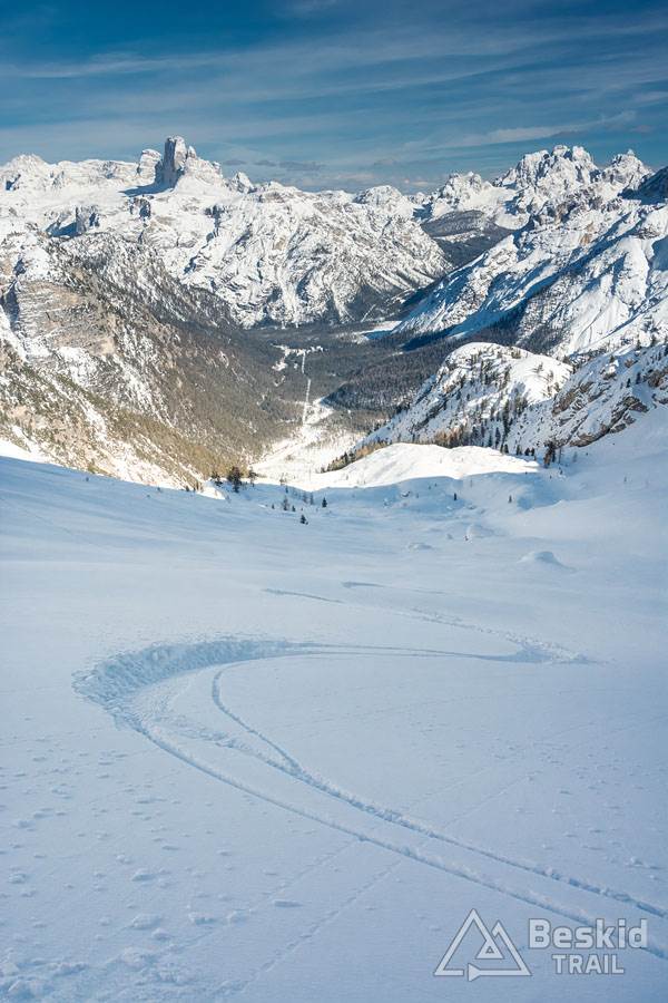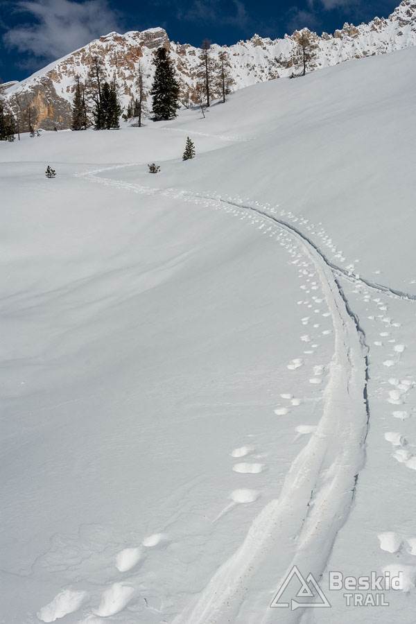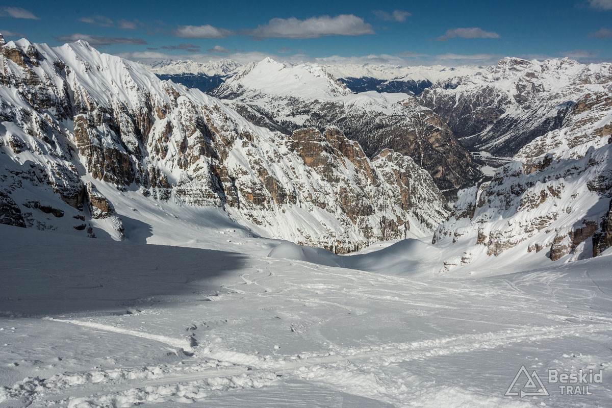 Jednym z zaplanowanych celów podczas tego wyjazdu była przełęcz Forcella Cristallo (2 808 m n.p.m.). Wycieczka na nią idealnie wpasowała się w oczekiwany kierunek zjazdu (który też był drogą podejścia) – północy, ponieważ dawał sporą gwarancję dobrego śniegu, niezależnie od pory dnia.