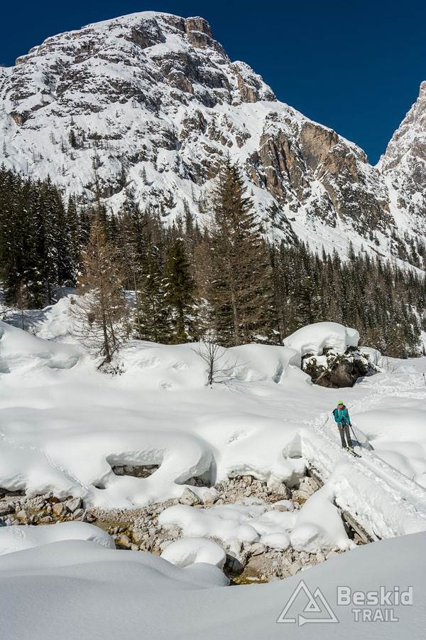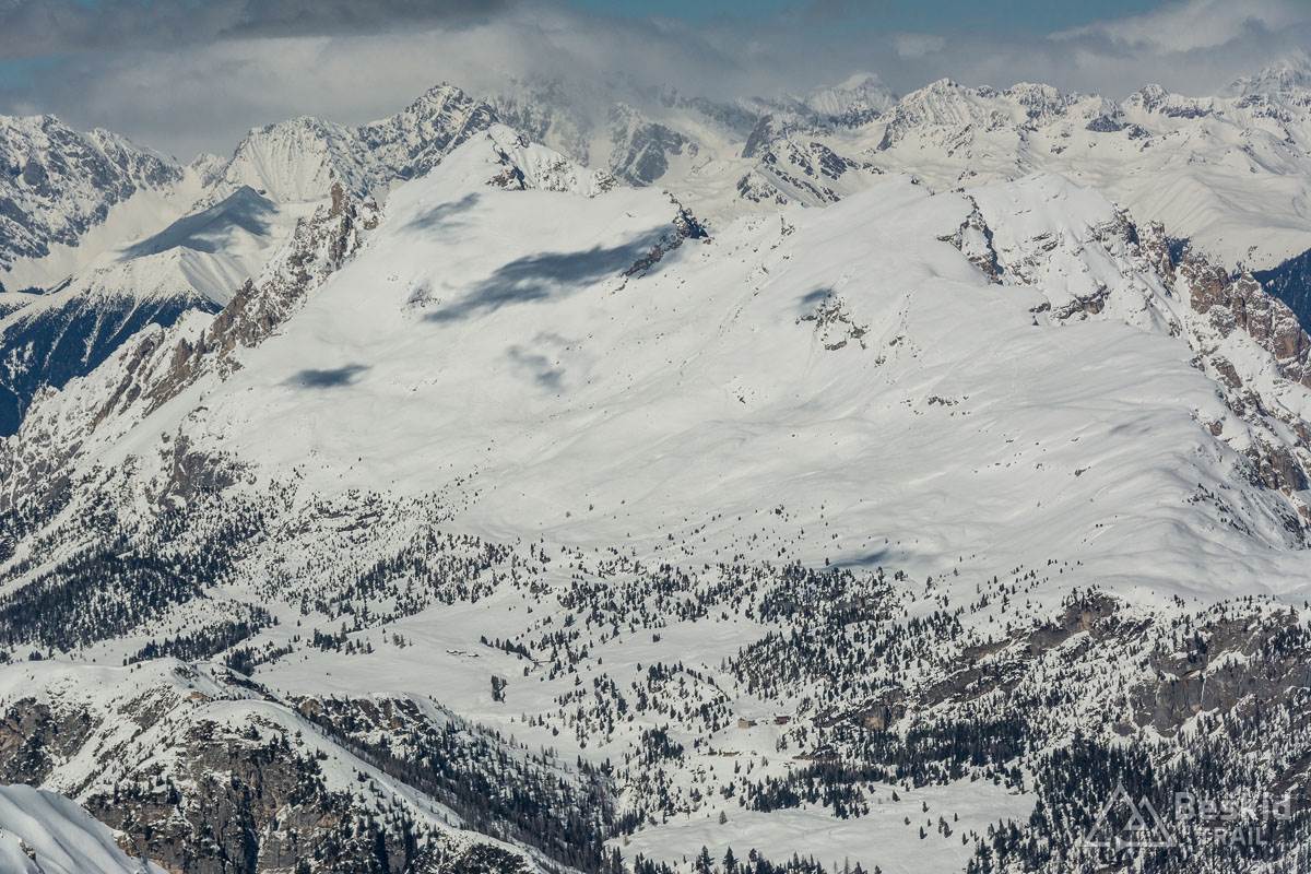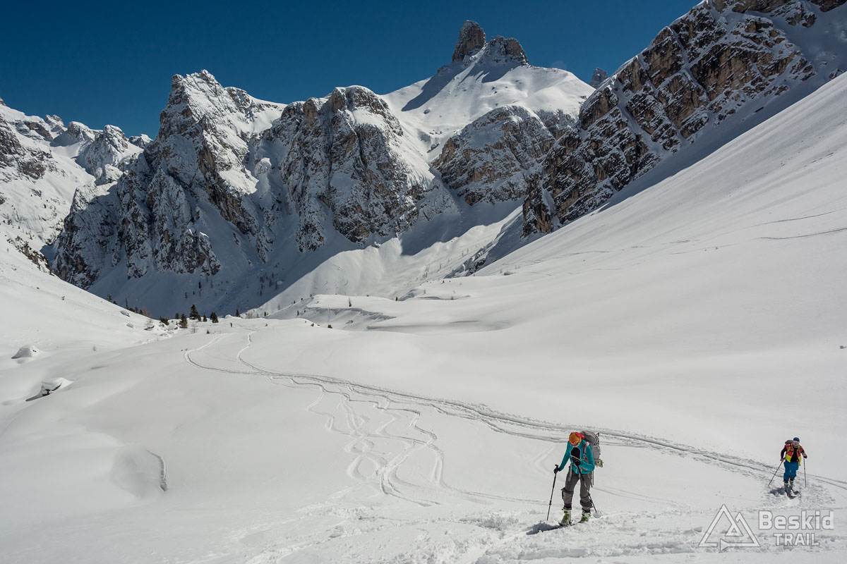 Celem pierwszego dnia, który był dla mnie swego rodzaju miernikiem zastanych warunków śniegowych, była przełęcz Forcella Colfiedo (2 721 m n.p.m.) w grupie Braies. Idealna tura na pierwszy dzień – podejście nietrudne i nie długie, a dające możliwość zweryfikować „co w trawie piszczy” czyli jak wygląda sytuacja śniegowa na miejscu (ilość, jakość, wystawy, zagrożenie lawinowe, itp.).
