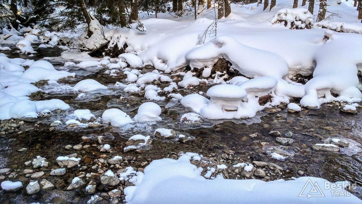 Dzień już od rana zapowiadał się słoneczny a i prognozy były nam przychylne, więc tym bardziej ochoczo rozpoczęliśmy turę. W dolinie przywitała nas niska temperatura, a z racji niskiego położenia słońca, przez niemal całe podejście – szliśmy w cieniu. Przyznam – trudno było się rozgrzać, a każdy krótki postój mocno wychładzał. Przyjęliśmy więc taktykę, by na drugie śniadanie dojść już w strefę słońca i w jego promieniach móc się ogrzać. Tym samym pierwszy odpoczynek wypadł nam już na podejściu pod Spaloną. Lepiej późno niż wcale ;).
