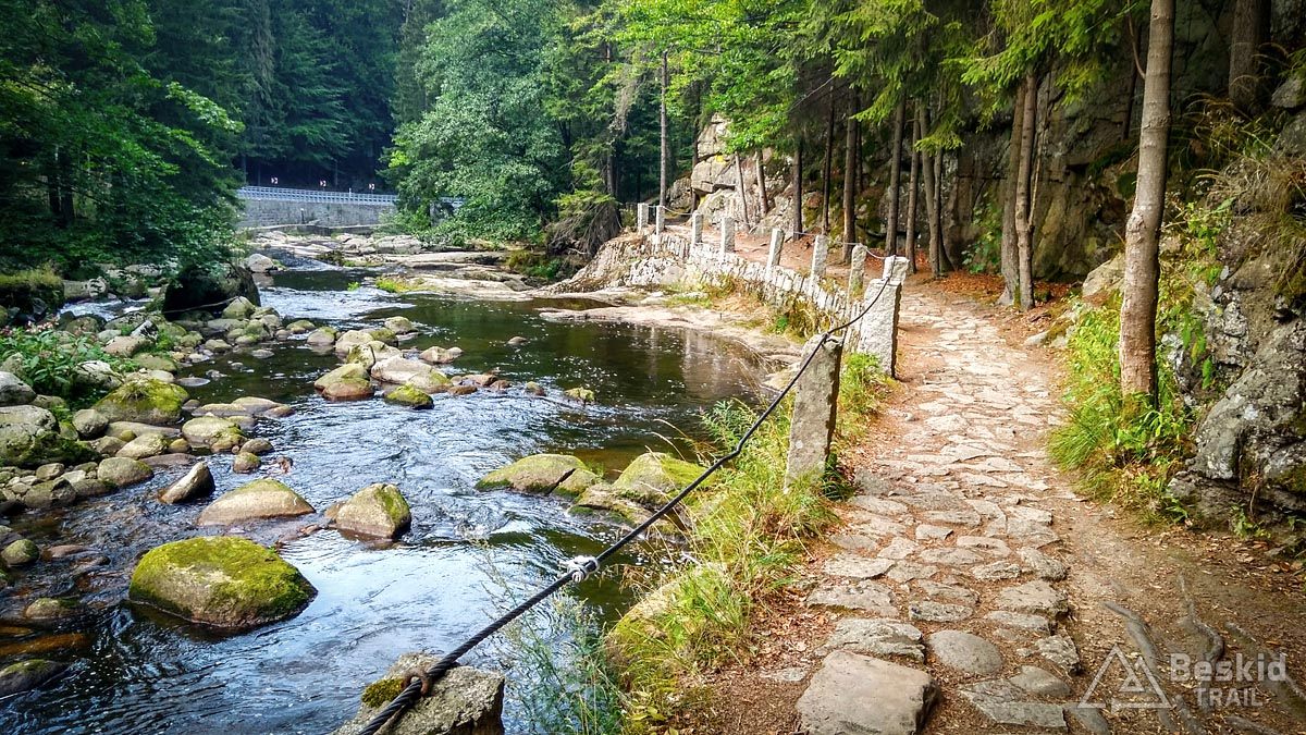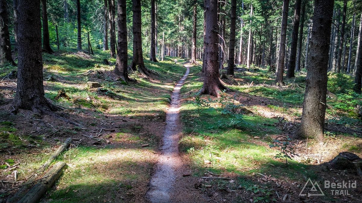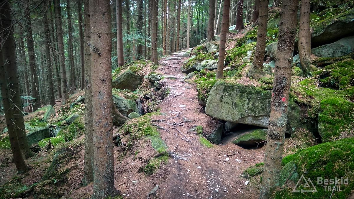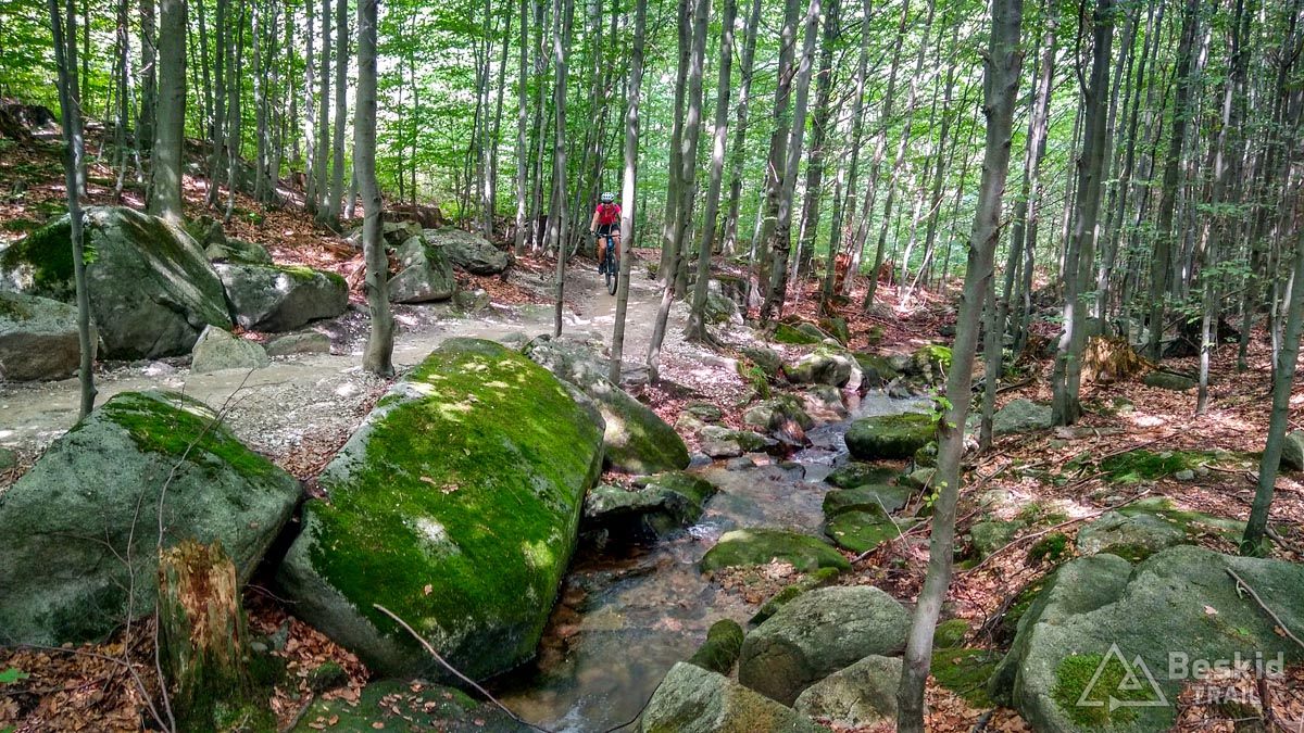 Z Jizerki podjeżdżamy pod Bukowiec i świetnym zielonym szlakiem z powrotem zjeżdżamy do doliny Izery. Później już malowniczy przejazd do Chatki Górzystów i świetny podjazd żółtym, a potem czerwonym szlakiem pod Sine Skałki. Potem już tylko niedługi grzbietowy fragment przez Kopalnię Stanisław w kierunku Wysokiego Kamienia, i niebieskim szlakiem zjeżdżamy do Szklarskiej Poręby.