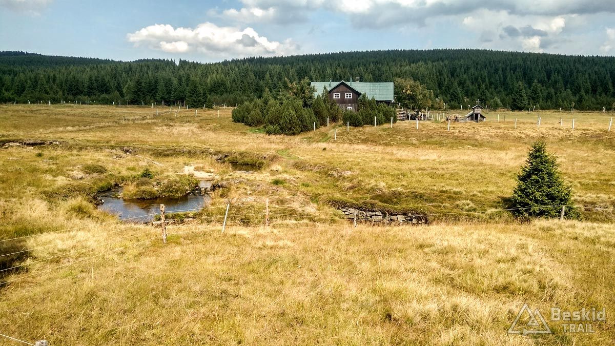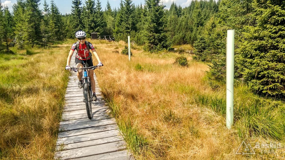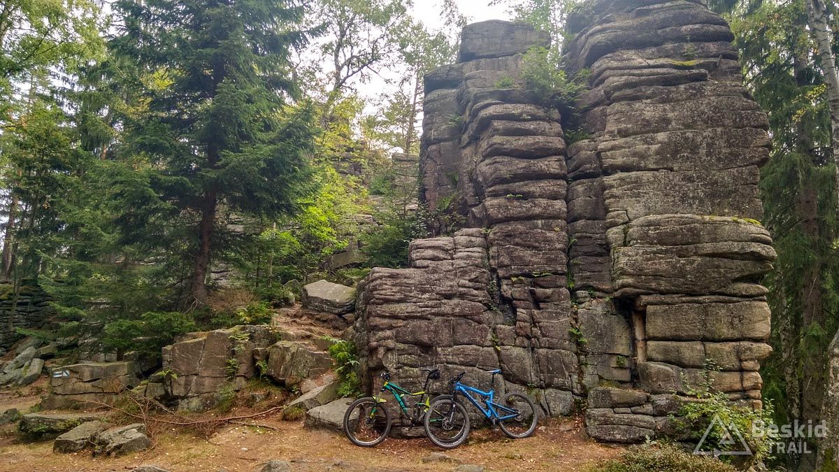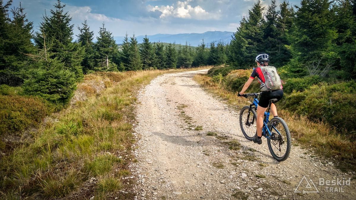 Ostatniego dnia wybieramy się na wcześniej wspomnianą czeską stronę Gór Izerskich. Planujemy dotrzeć do Smedavy, objechać ją dookoła (Ola wyczytała, że jej trawers jest widokowy. I w rzeczy samej taki był 🙂 ). Przez Jakuszyce i Jizerke dojeżdżamy do celu, nie trudząc się nadto przejazdem ;). Za to początek drogi powrotnej przez grzbiet Pytlácké kameny – Jelení stráň już taki łatwy nie był, szczególnie że raczej niemile są tam widziane rowery ;). Przejazd ten dał nam jednak sporo satysfakcji, choć wymagał krótkiego prowadzenia rowerów.