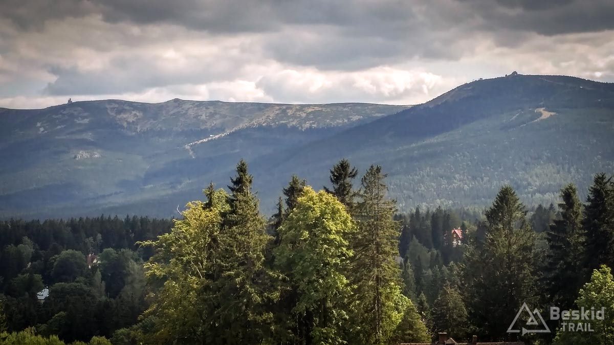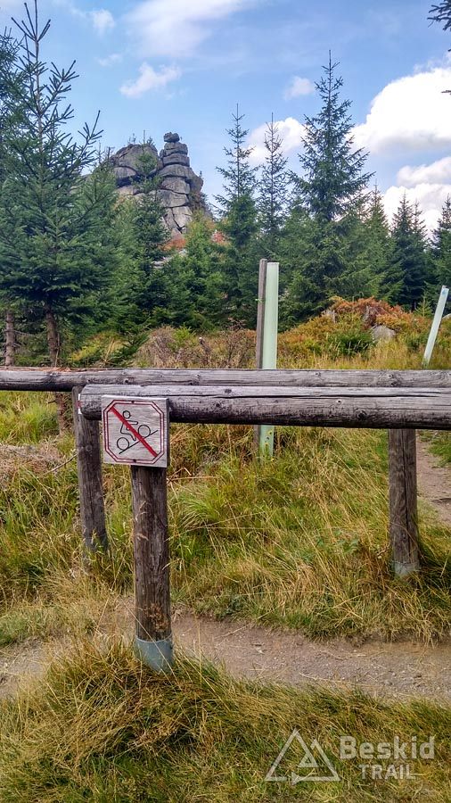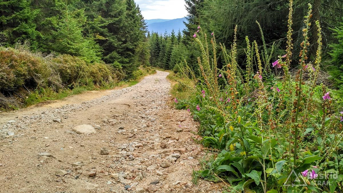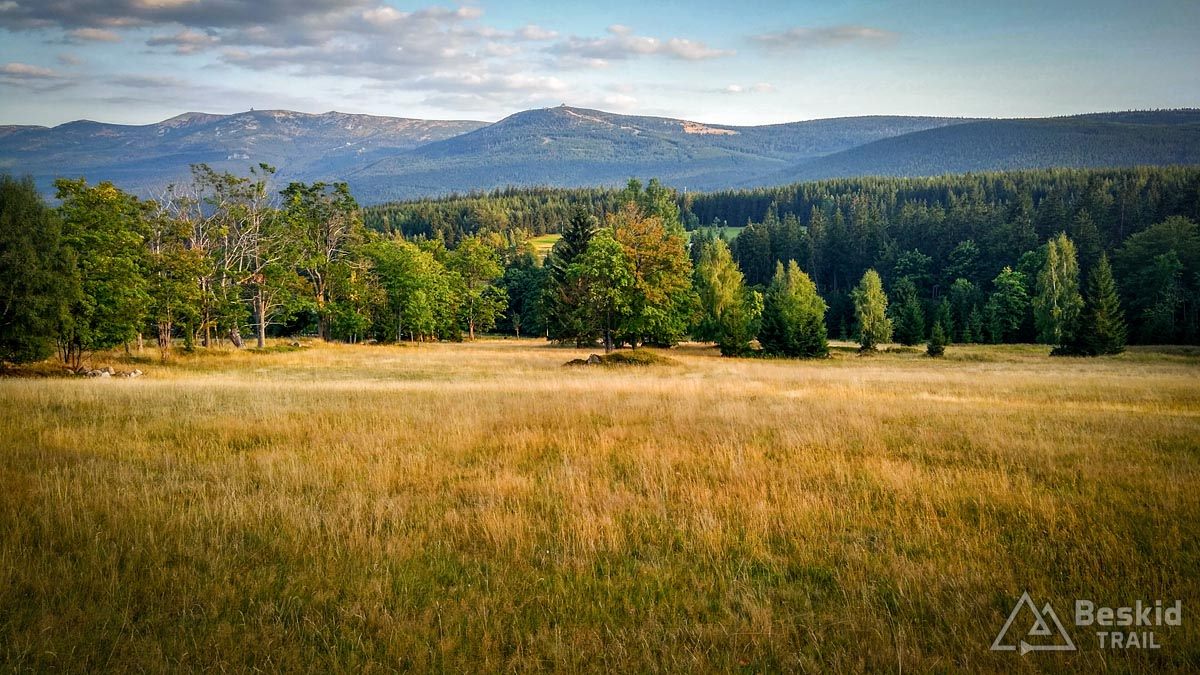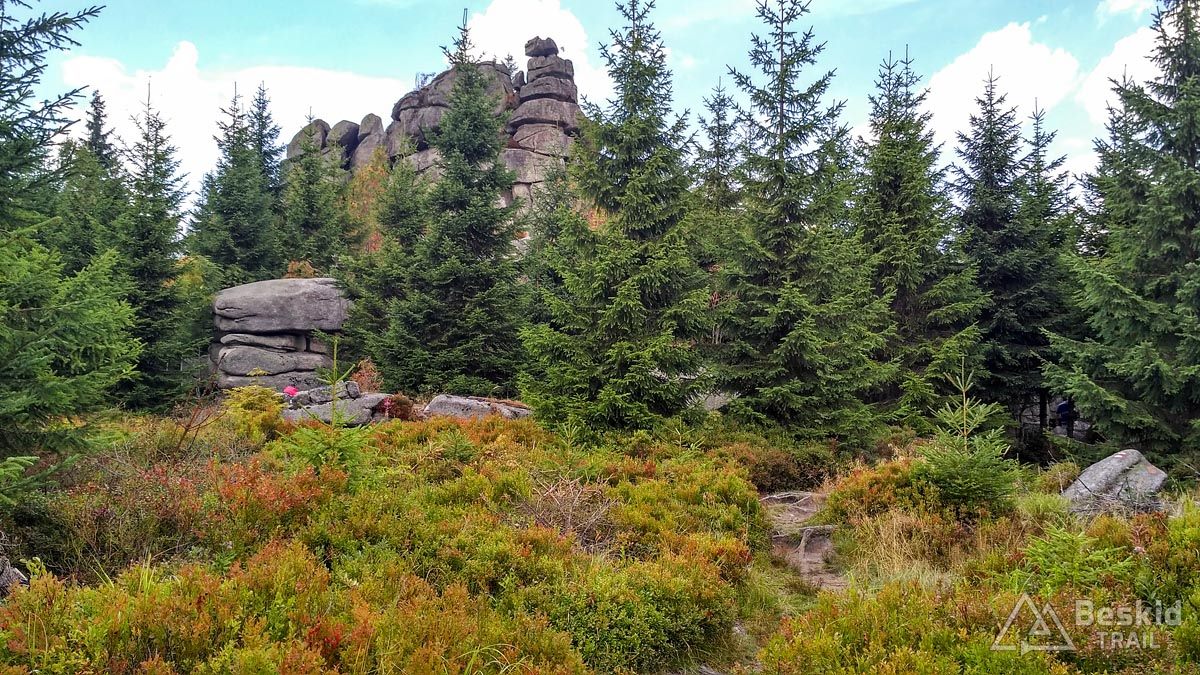 Ostatniego dnia wybieramy się na wcześniej wspomnianą czeską stronę Gór Izerskich. Planujemy dotrzeć do Smedavy, objechać ją dookoła (Ola wyczytała, że jej trawers jest widokowy. I w rzeczy samej taki był 🙂 ). Przez Jakuszyce i Jizerke dojeżdżamy do celu, nie trudząc się nadto przejazdem ;). Za to początek drogi powrotnej przez grzbiet Pytlácké kameny – Jelení stráň już taki łatwy nie był, szczególnie że raczej niemile są tam widziane rowery ;). Przejazd ten dał nam jednak sporo satysfakcji, choć wymagał krótkiego prowadzenia rowerów.