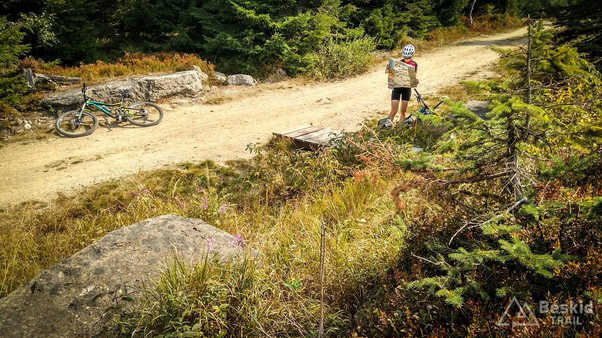 Sobotni poranek wita nas zachmurzonym niebem i nie do końca stabilną prognozą pogody. Postanawiamy więc zmienić plany, i wycieczkę na czeską stronę Gór Izerskich przenosimy na niedzielę. By jednak nie próżnować, wyszukujemy na mapie resztki nieznanych nam szlaków w Karkonoszach i okolicach Szklarskiej, i usiłujemy je jakoś zapętlić w całość. Finalnie udało się przejechać kilka naprawdę świetnych singli i szlaków, które do tej pory nie były nam znane. Jednocześnie coraz bardziej przekonujemy się o sporym potencjale karkonoskich ścieżek, którymi mniej lub bardziej oficjalnie można jeździć ;). Czerwony szlak przez Hutniczą Górę i niebieski przez Sowiniec i Chybotka pozwala wykorzystać możliwości fulla :).