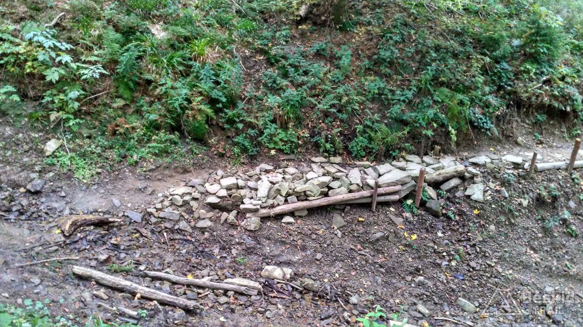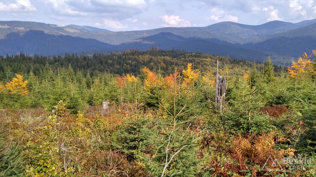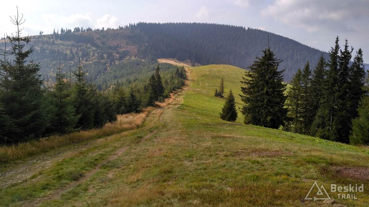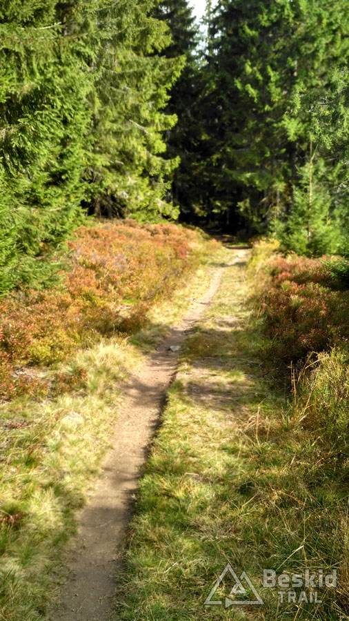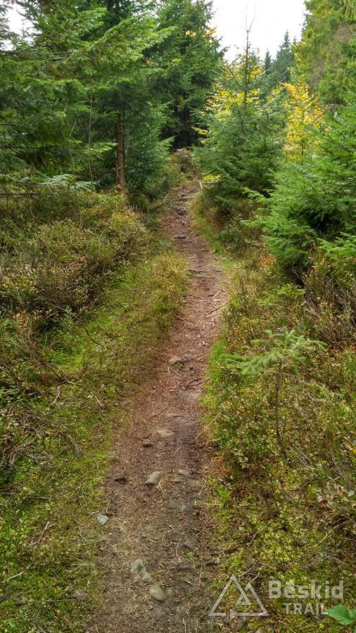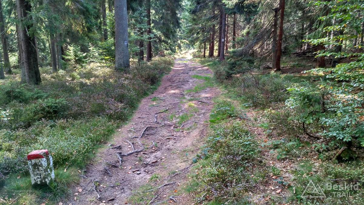 Zrobiwszy sobie kilkanaście minut odpoczynku, ruszyłem w dalszą drogę w kierunku Trzech Kopców. Dalej niebieskim szlakiem, wzdłuż granicy państwa, pojechałem na Krawców Wierch. Przejeżdżany przeze mnie fragment jest jedną z nielicznych ostoi naturalnie dzikiego szlaku granicznego. Co prawda quadowcy i leśnicy zaczęli już w niego ingerować, ale wciąż spora jego część pozostaje naprawdę świetnym trailem.