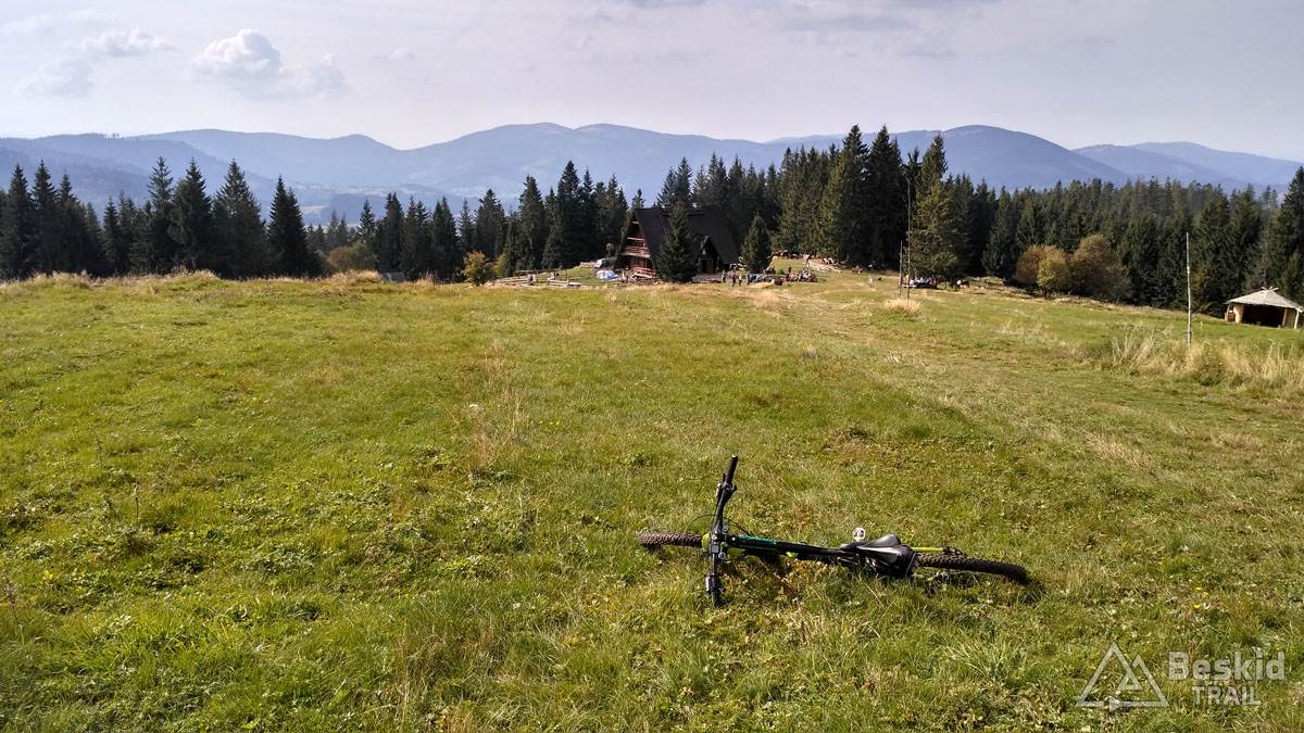Z Hali Krawculi zjeżdżam dalej granicą na Przełęcz Glinka Ujsolska i dalej granicą jadę w kierunku Jaworzyny. Mniej więcej w połowie tego fragmentu chcę znaleźć odbicie, by dostać się na niżej położone stokówki, którymi zamierzam wrócić do Glinki. Po dwóch nieudanych próbach przebicia się, udaje się trafić na sensowny, choć stromy zjazd. Później już bardzo wygodną leśną drogą dojeżdżam nieco powyżej pętli PKS w Glince. Na miejscu kupuje kilka kabanosów i kolejną stokówką wjeżdżam na Glinkę. W zasadzie zależało mi by maksymalnie wygodnie dostać się do sąsiedniej doliny Złatnej, a że nie chciałem jechać asfaltem, to wybrałem przebicie się przez grzbiet. O ile wjazd był prawie bezbolesny, o tyle zjazd nie końca mi wyszedł. Miałem kilka podejść do niego, ale żaden nie kończył się czymś przyzwoitym. Koniec końców przebijałem się z Kubiesówki mocno zakrzaczonym lasem, gdzie zapewniam Was – na pewno do tej pory nie widziano rowerzysty. Koniec zjazdu to już zabawa po dnie potoku, ale uff, udało się. Mocno wymęczył mnie ten zjazd a miał być etapem, gdzie nieco odpocznę.