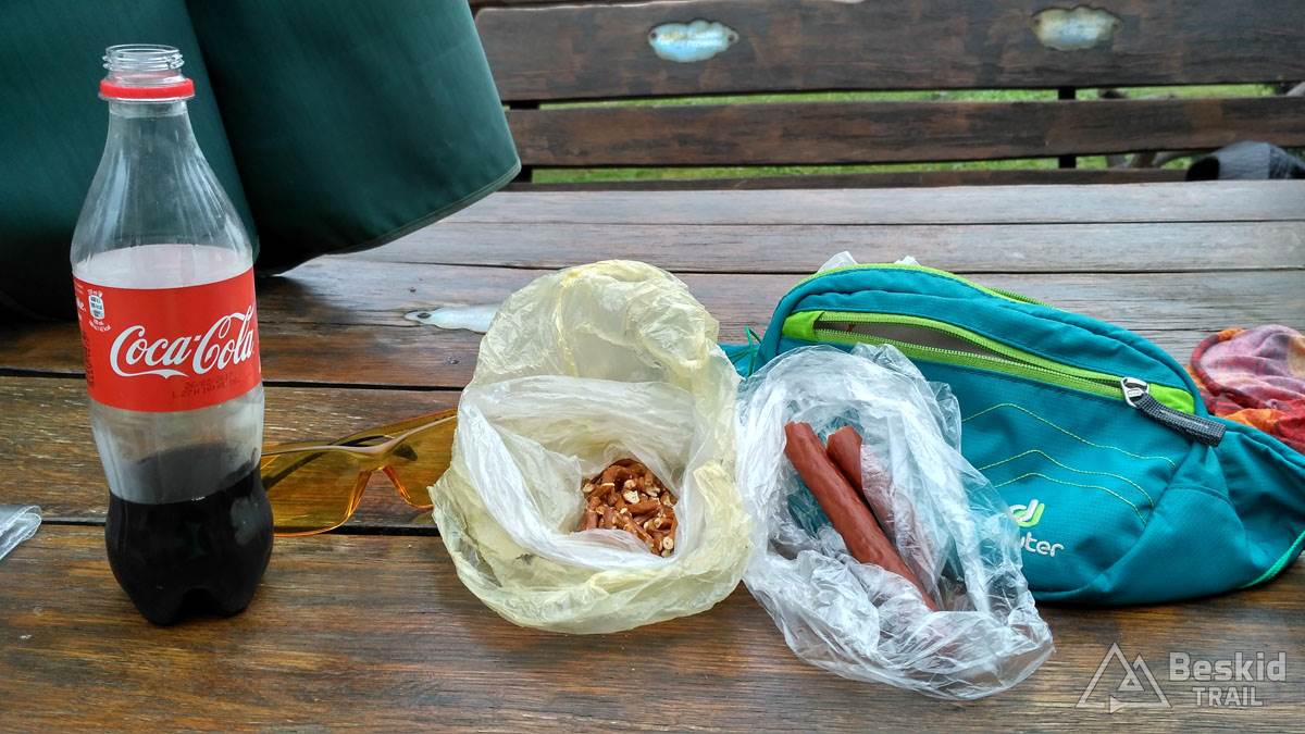 Dojeżdżając na grzbiet wyjątkowo zatrzymuje się przy schronisku na Hali Lipowskiej. Tutaj stawiam sam sobie colę, dojadam kabanosa i zbieram siły na zjazd. Jest 16.50. Odnoszę kilka śmieci do kosza w schronisku, odwracam się i… zaczyna padać. Pamiętacie jaką godzinę wskazałem na początek opadów? Tak – punktualnie o 17-tej zaczęło kropić, a później już padać. Mnie został już tylko przejazd przez Rysiankę i zjazd do Sopotni niebieskim szlakiem. Przyznaję się bez bicia, że pierwszy raz jechałem nim na rowerze. Stąd też bardzo zależało mi, by nim zjechać. Wiedziałem, że mogę szybciej dostać się na dół, jedną z przecinek a potem stokówką, lecz ów niebieski szlak był dla mnie ważniejszy. Górny odcinek jest jeszcze przejezdny dobrym tempem i przy lepszej technice rowerzysty, na pewno jest w nim moc. Mnie jeszcze się podobał. Z kolei druga, dolna część, pomimo fajnego początku, dalej okazała się dla mnie mało przystępna. Może zmęczenie, może mokre warunki i presja czasu spowodowały średnie wrażenia z jego przejazdu. Niemniej niekoniecznie będzie mi się chciało powtarzać ten fragment w niedalekiej przyszłości. Teraz przynajmniej wiem, jak ów szlak prezentuje się z perspektywy rowerzysty.