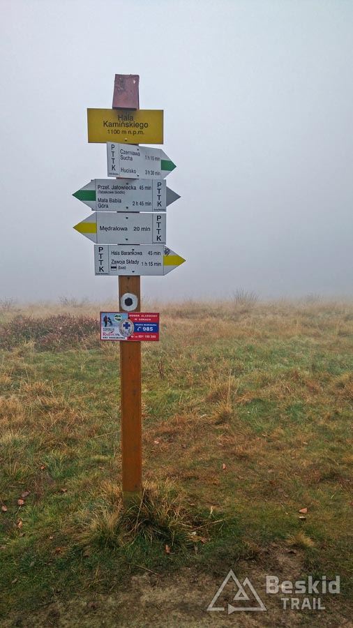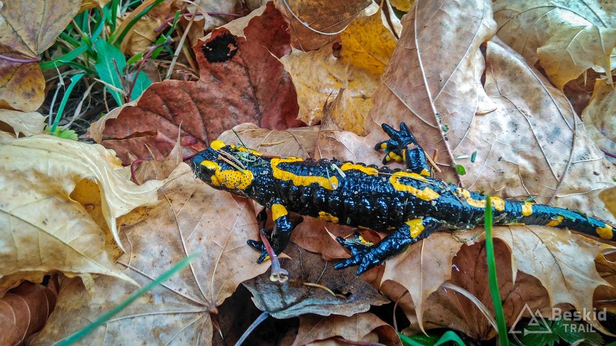 Po odwiedzinach w sklepie w okolicach zjazdu na Mosorne (aż dziw, że przy ścieżkach nie ma choćby budki z napojami!) zawracamy, by stromym, asfaltowym podjazdem wjechać z powrotem na Halę Barankową. Po drodze wypatruję w betonowym rowie zagubioną salamandrę, która ewidentnie nie umie wydostać się z pułapki; przenosimy ją więc w bezpieczne miejsce i po krótkiej sesji foto z gadzinką jedziemy dalej. U podnóża Smyrakowej rozpoczyna się transgraniczna ścieżka dwukierunkowa „Tabakowy” , będąca świetna alternatywą dla żółtego szlaku pieszego, który na podjazd nieszczególnie się nadaje, przynajmniej w dolnej części. „Tabakowy” ma ponad pięć kilometrów i pozwala w przyjemny sposób podjechać aż pod Mędralową. Myślę, że w dół również może dostarczyć sporo radości, jest też bardzo widokowy, choć to wiem raczej z poprzednich odwiedzin tego rejonu. Dziś widoki jedynie na najbliższe kilkadziesiąt metrów, gęsta mgła skrapla się na okularach, kurtce, nogawkach…brrr. Klimat świetny, ale jednak temperatura 5 stopni powyżej zera zachęca do szybkiego zjazdu do samochodu. Na deser zostawiliśmy sobie przejazd zielonym szlakiem przez Halę Kamińskiego. Bardzo przyjemny singiel, którym zjeżdżamy z powrotem na Przełęcz Klekociny, w siąpiącym deszczu kończąc dzisiejszy wyjazd.