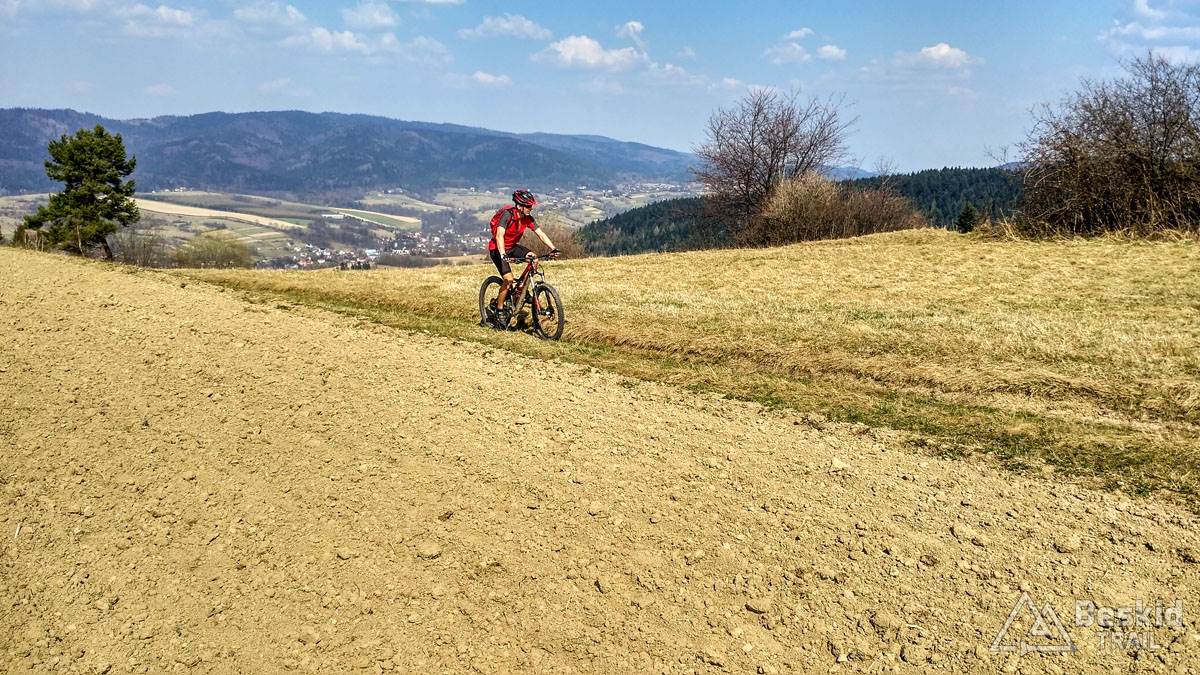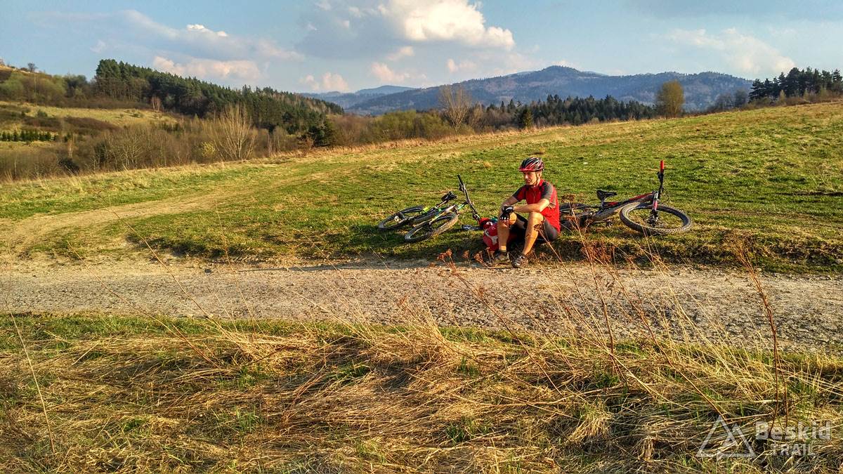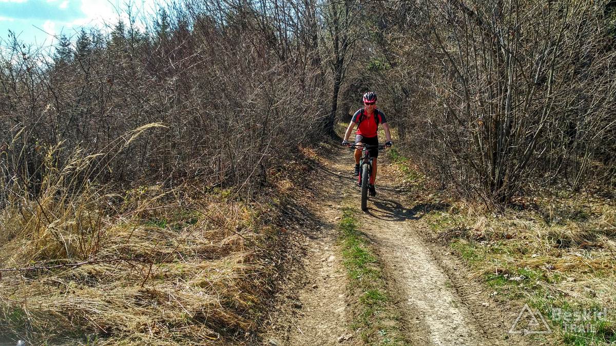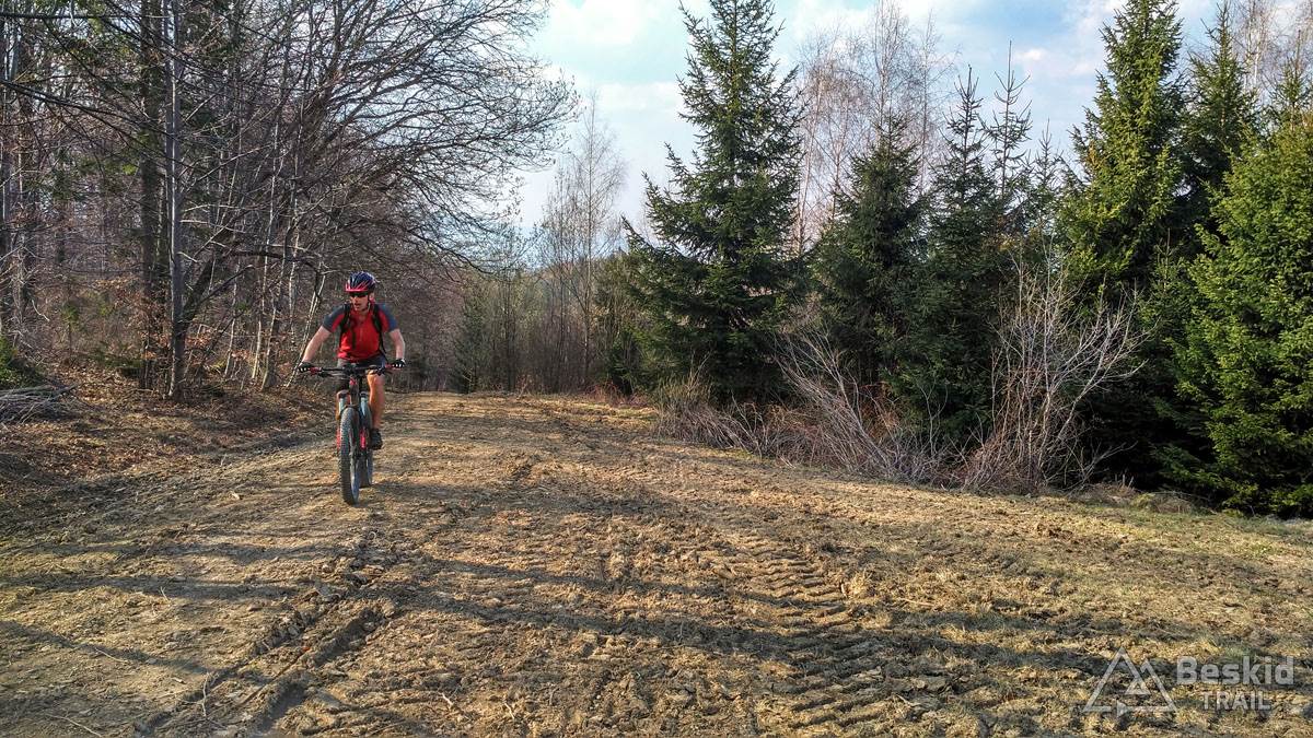 Przed Janikową Grapą, z Góry Beskid, wymagającą i stromą dróżką, zjechaliśmy na przełęcz nad Mutnem. Następnie mocnym podjazdem, wbiliśmy się na Biadaszowski Groń. Był to jeden z tych podjazdów, gdzie można zgubić swoje płuca ;).